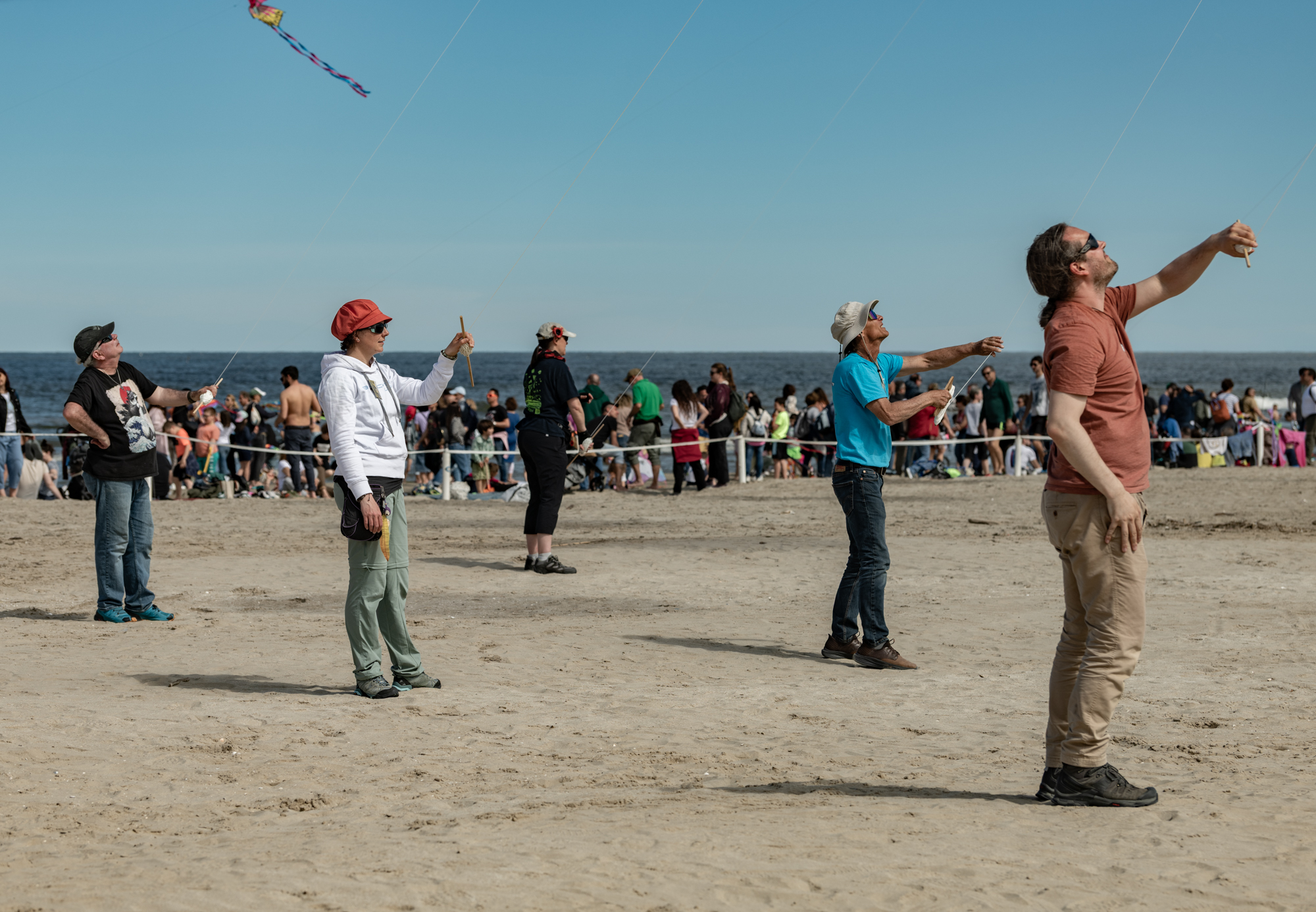 The wind conditions were near perfect and so the kites did not need to be worked in the sky. This was good because the fliers were not all experienced with flying large rokkaku kites.