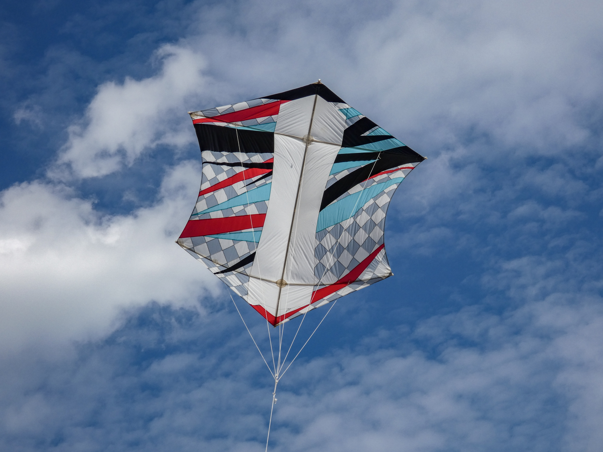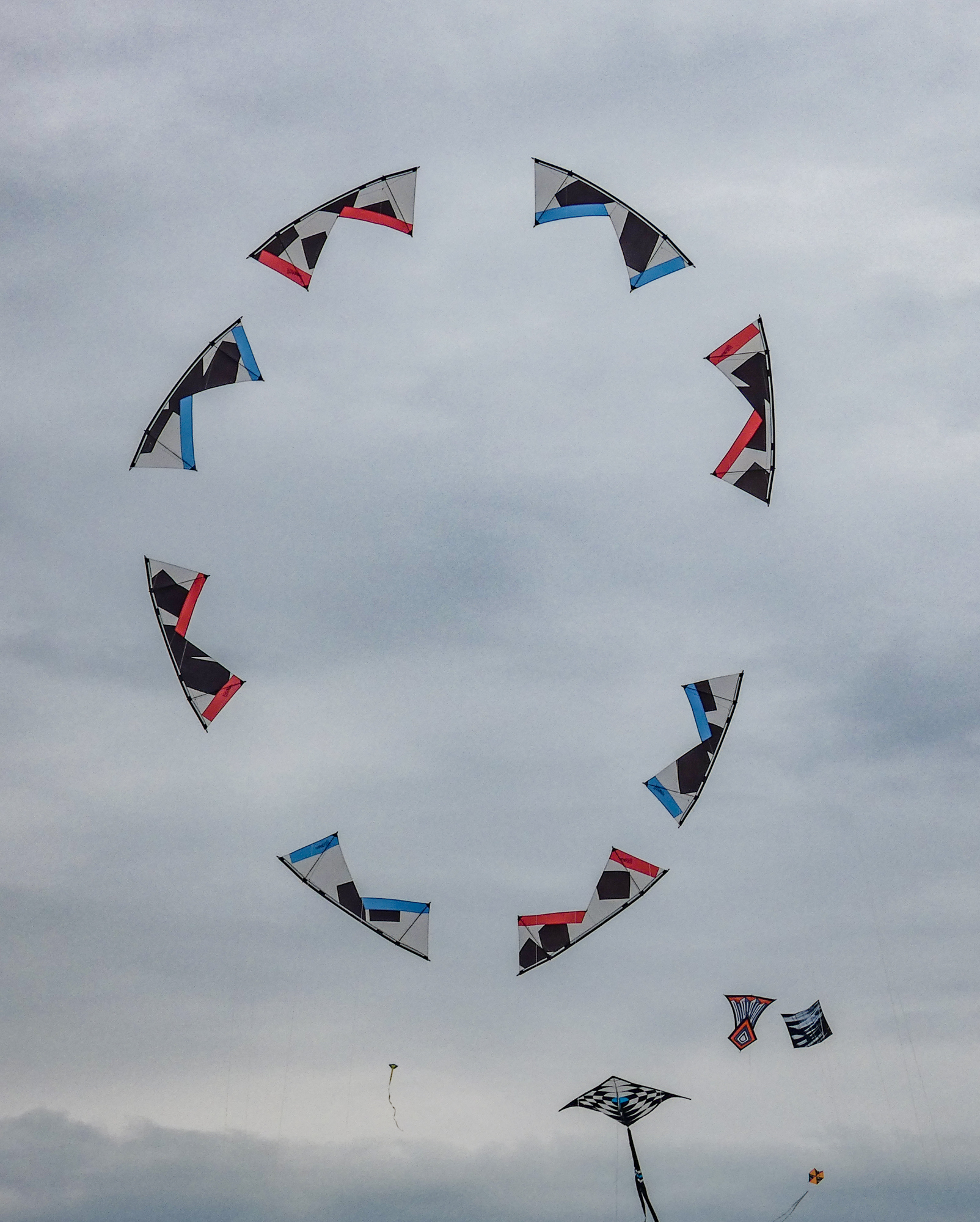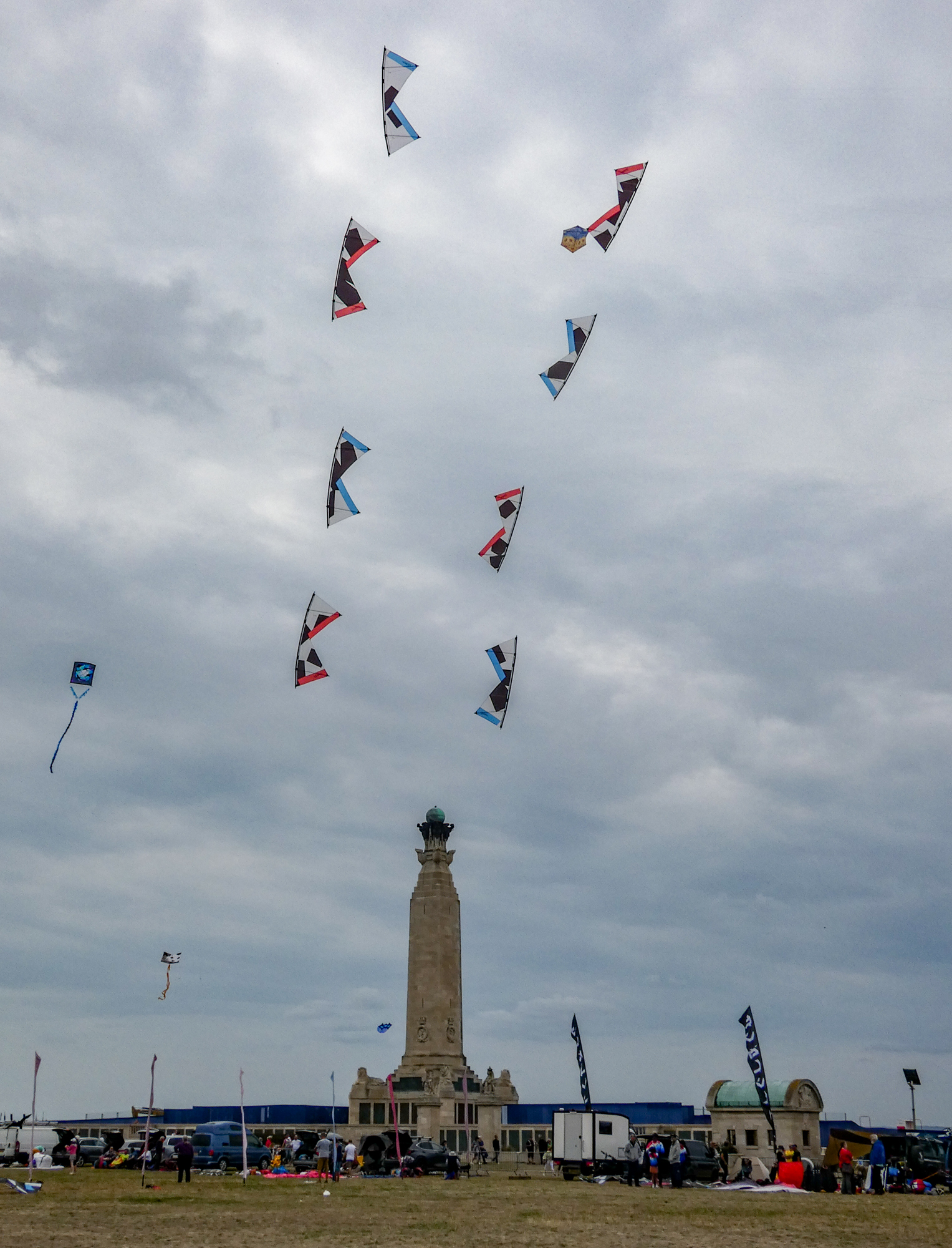 The larger kite was tending towards topping out so the flight was quite short after an interim re-launch proved to be more time consuming than it should have been. The kite was not moved far enough out of the centre of the window before inflation was attempted!