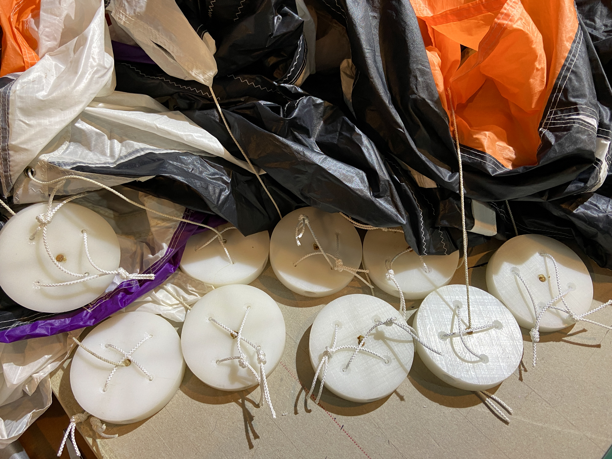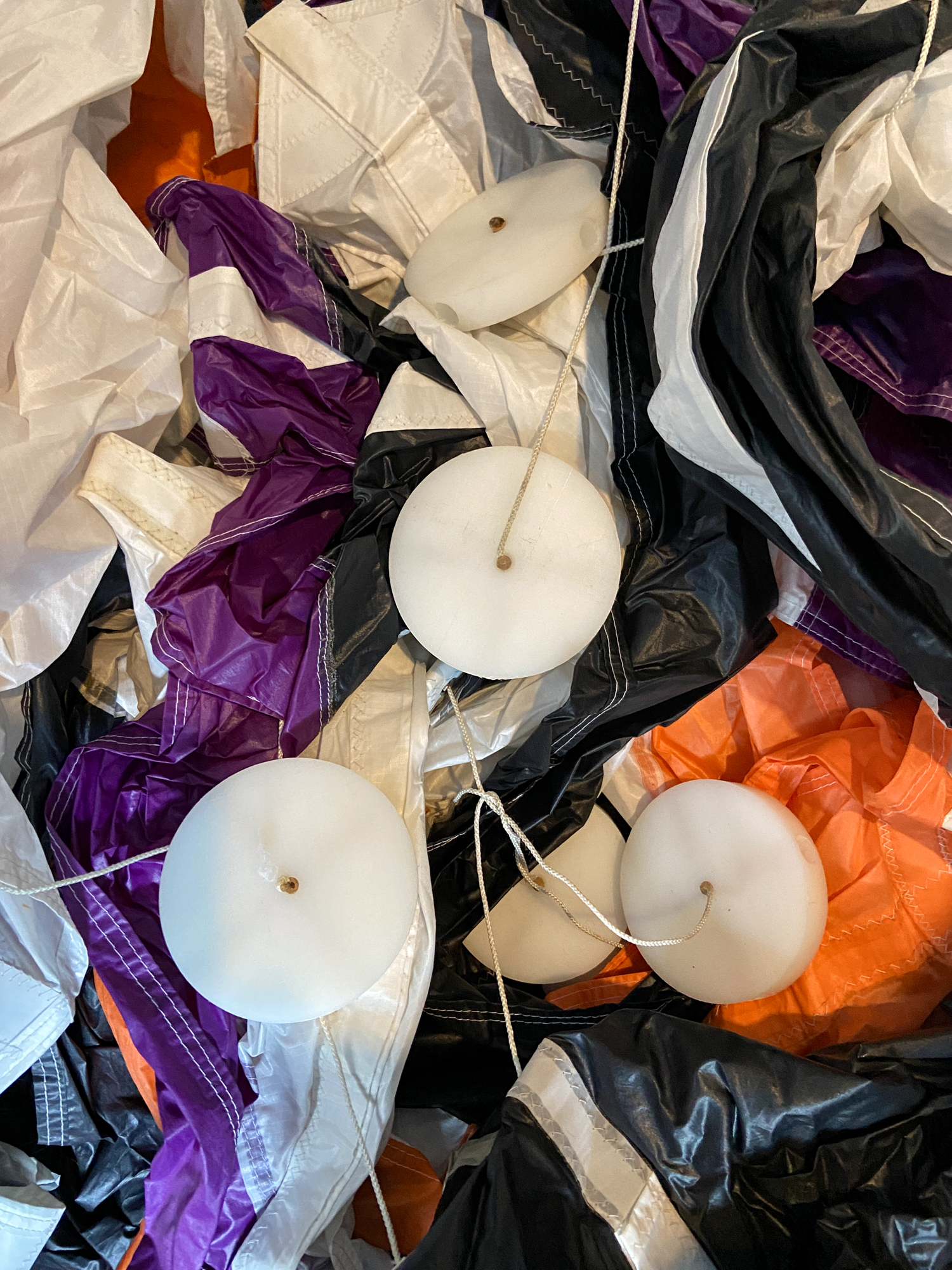 Hanging up the sails and sorting them into rows.