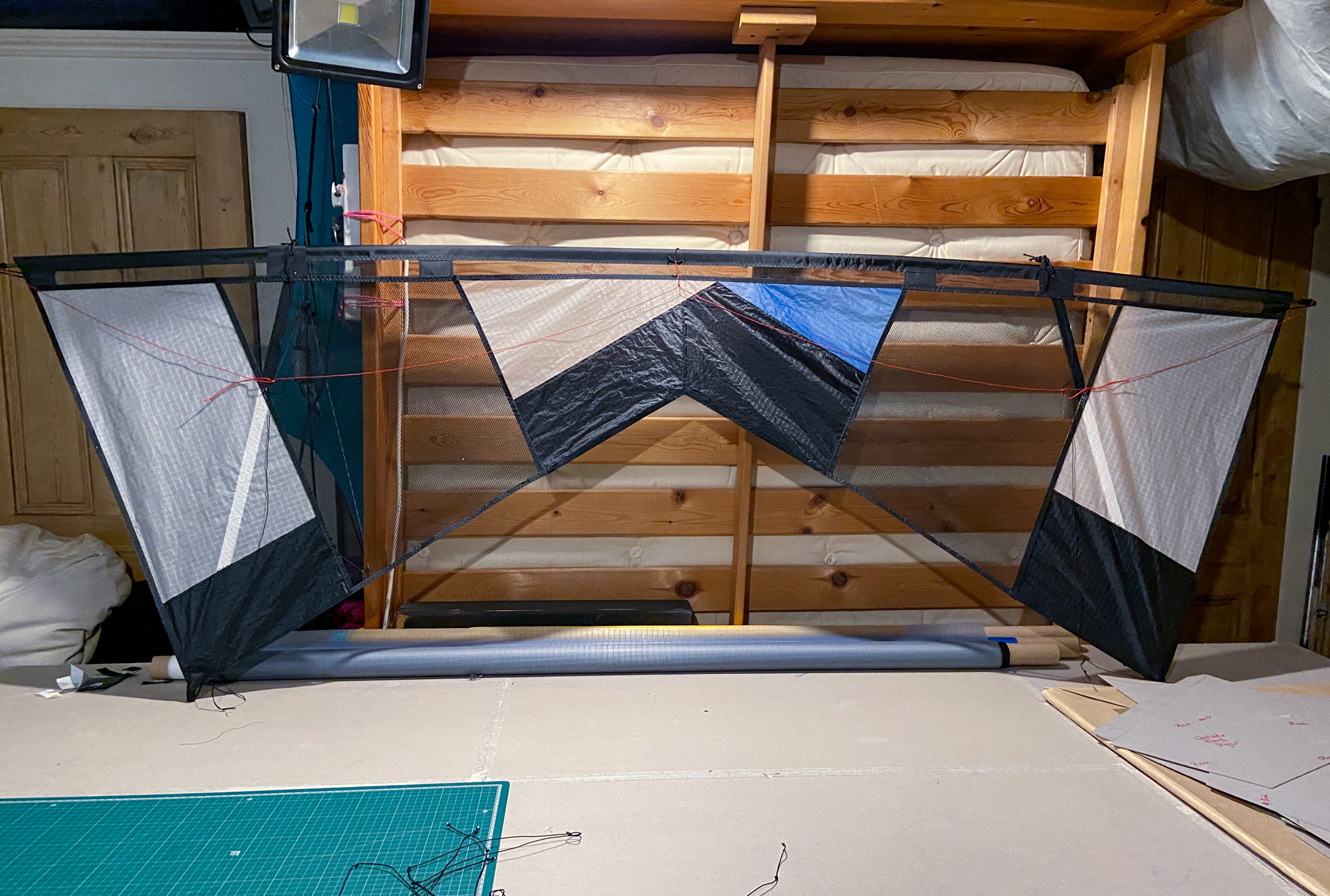 Blue Icarex arrived from Germany, 15th November 2022. All the components are now prepared for fabrication and the initial sewing of the Icarex is done, 16th November 2022.
