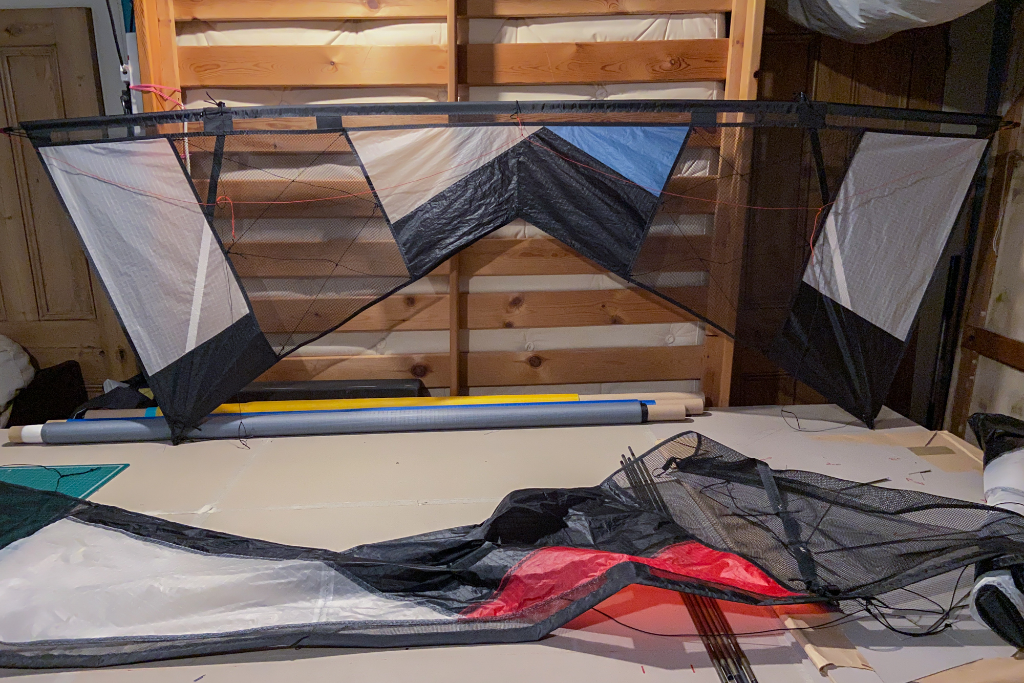 In 2022 needing a project involving the preparation of replacement leading edges I decided to re-address the original designs from 2008/2009 and 'invented' a transitional version. The project is being developed using a polyester mesh with a wider grain than the original Revolution leading edge mesh.