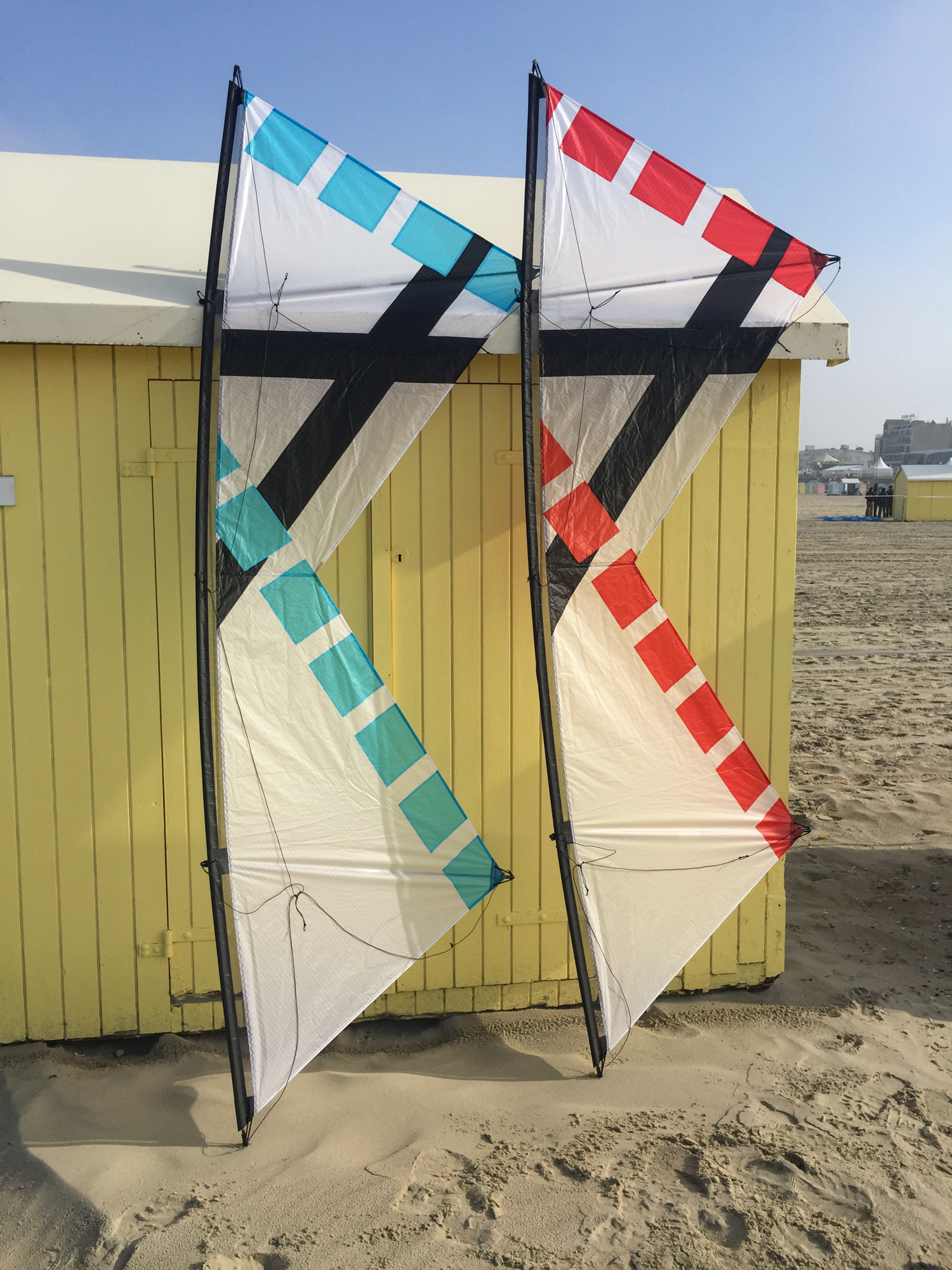 This was the first time the team had a chance to fly the new Zen proportioned sails fabricated by Martin Lester using the 1994 Rev1 graphic by Jørgen. In the event there was not even time to fly the kites before we were called for an arena spot.