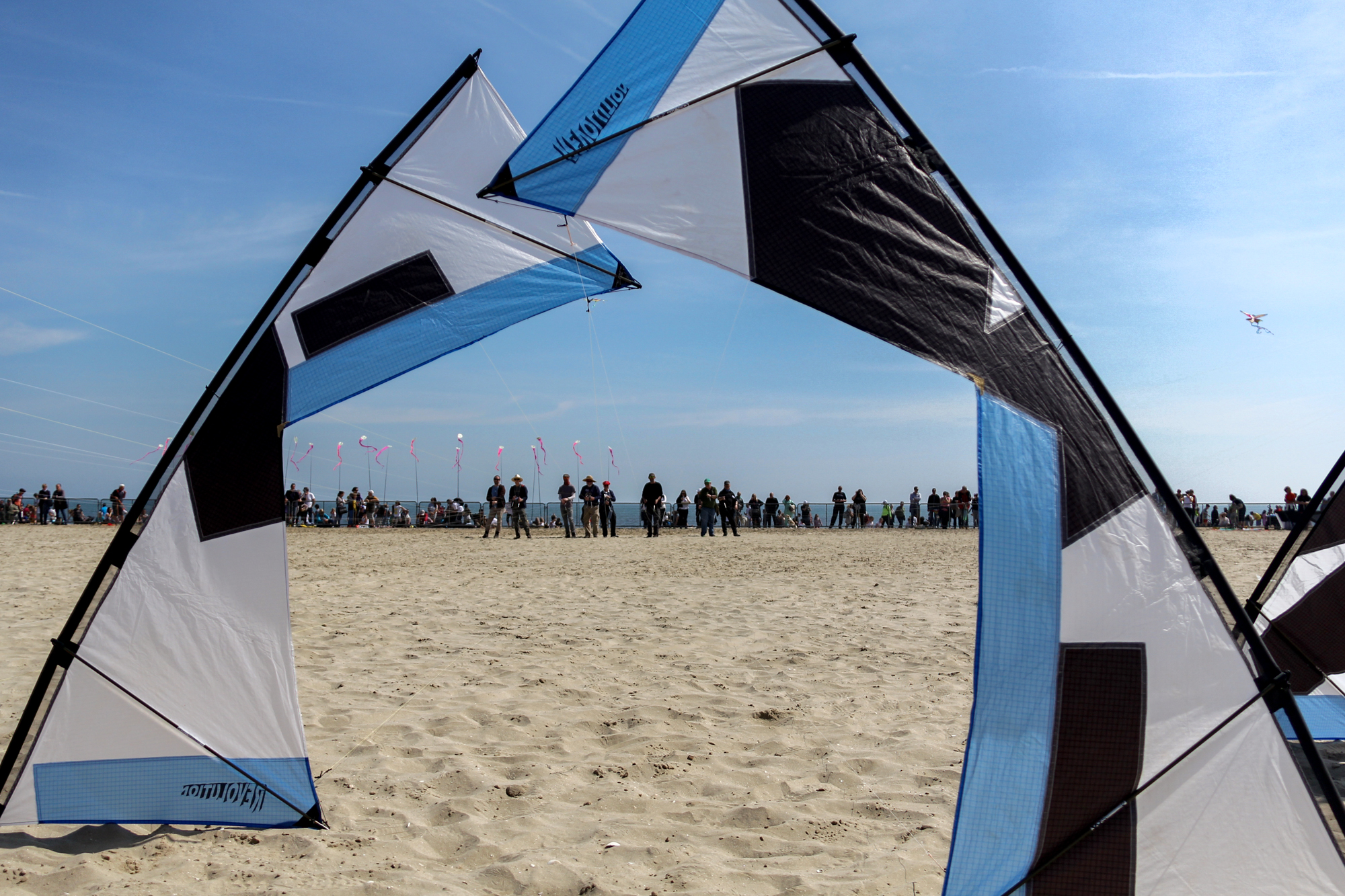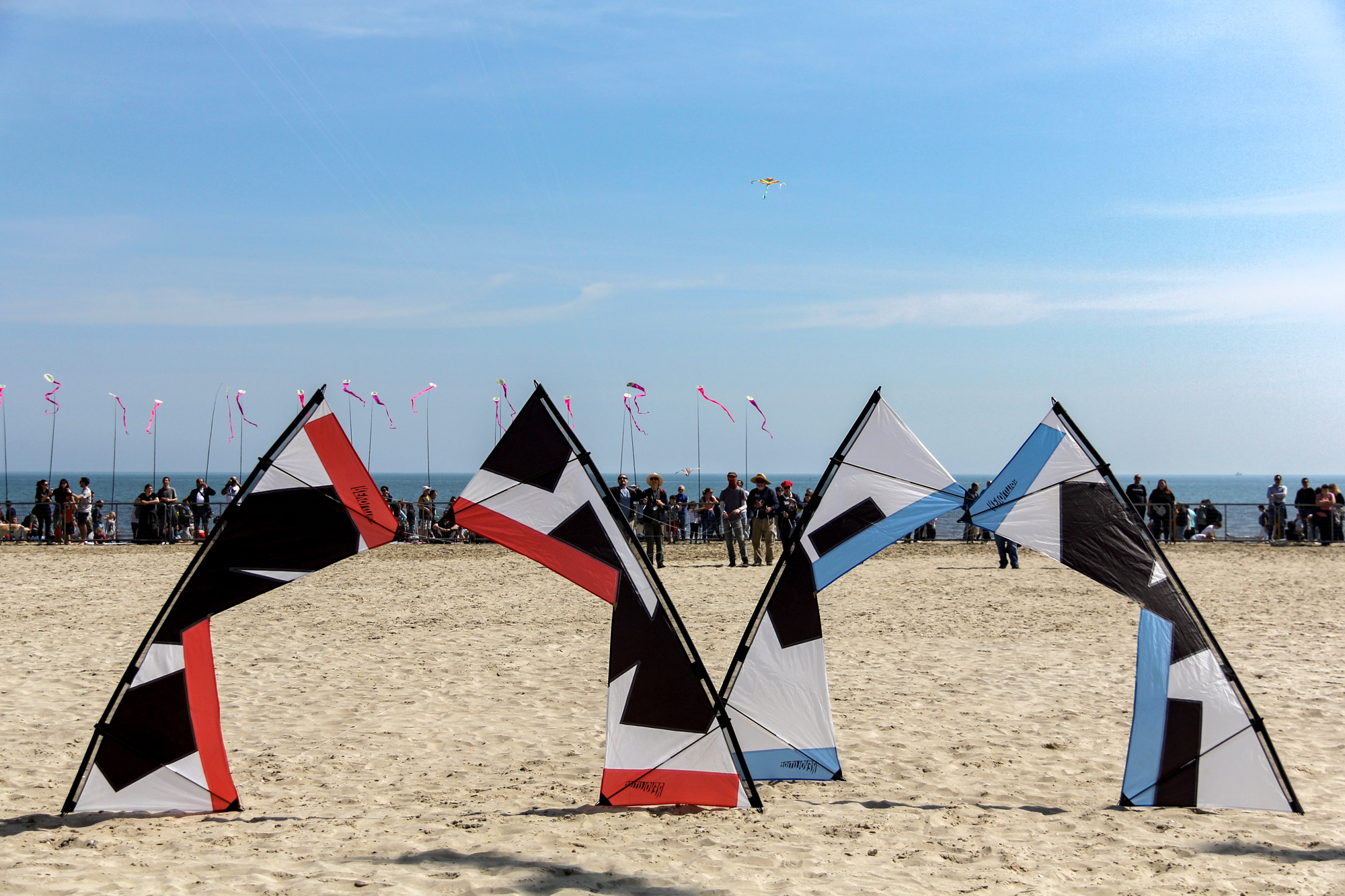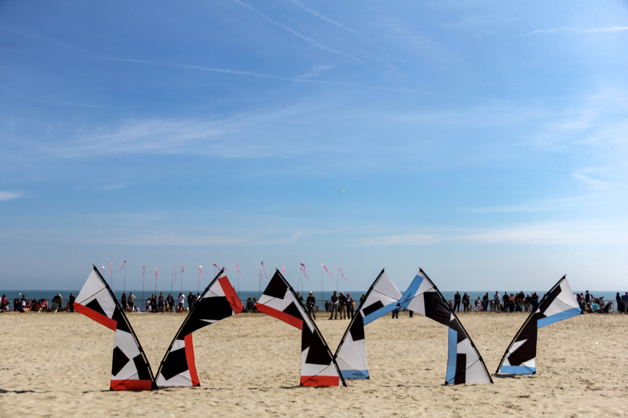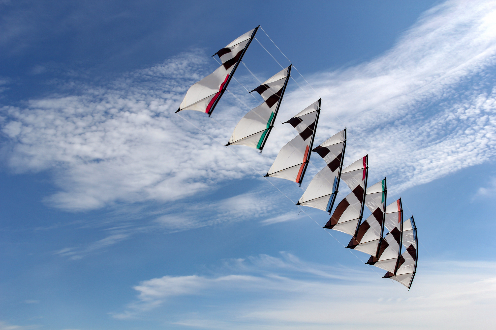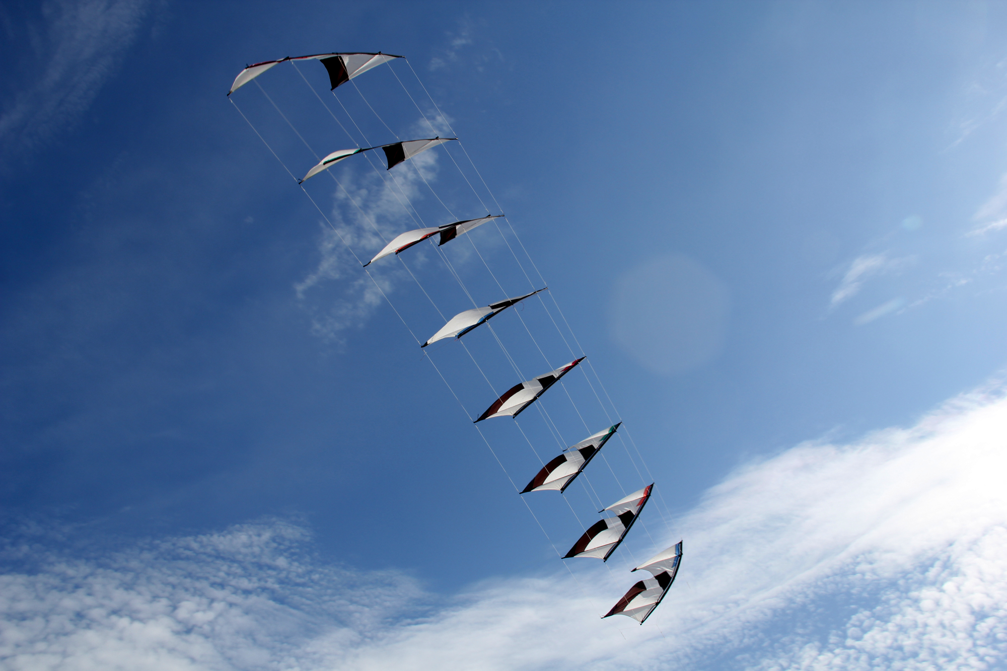The flying lines were secured to a sand anchor and the stack extended with the top sails attached to 'sandbag' lines.