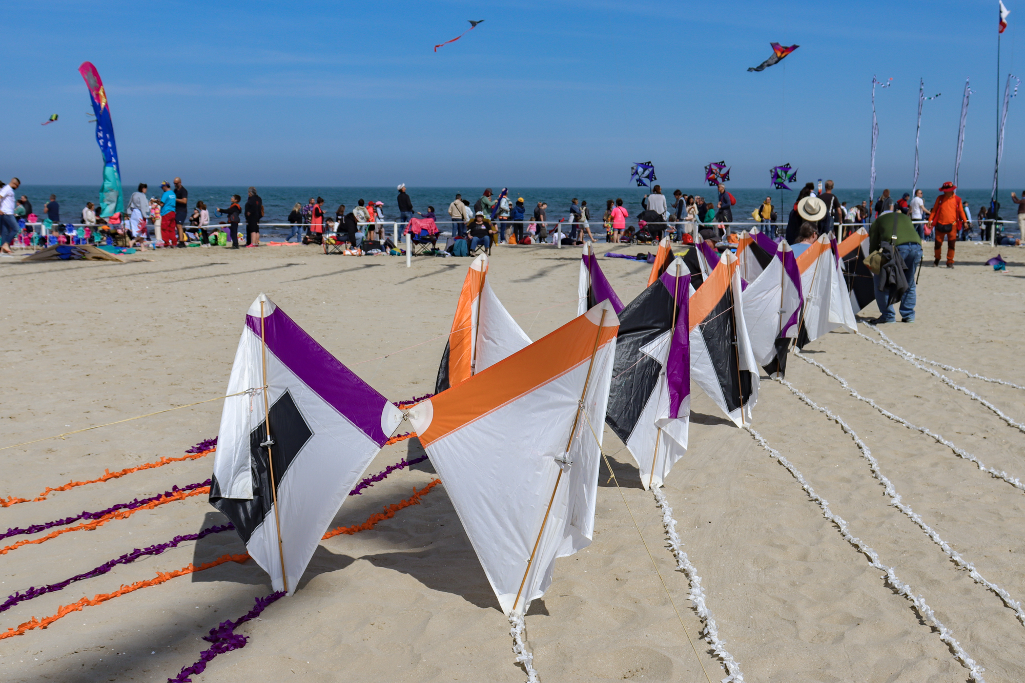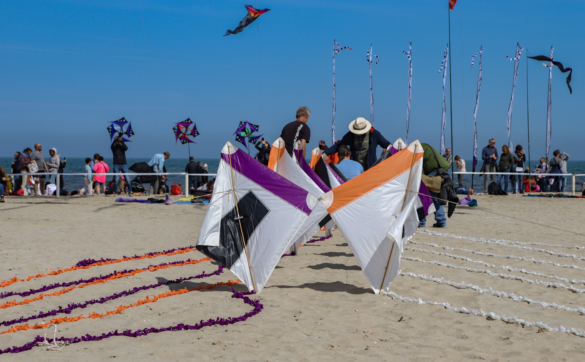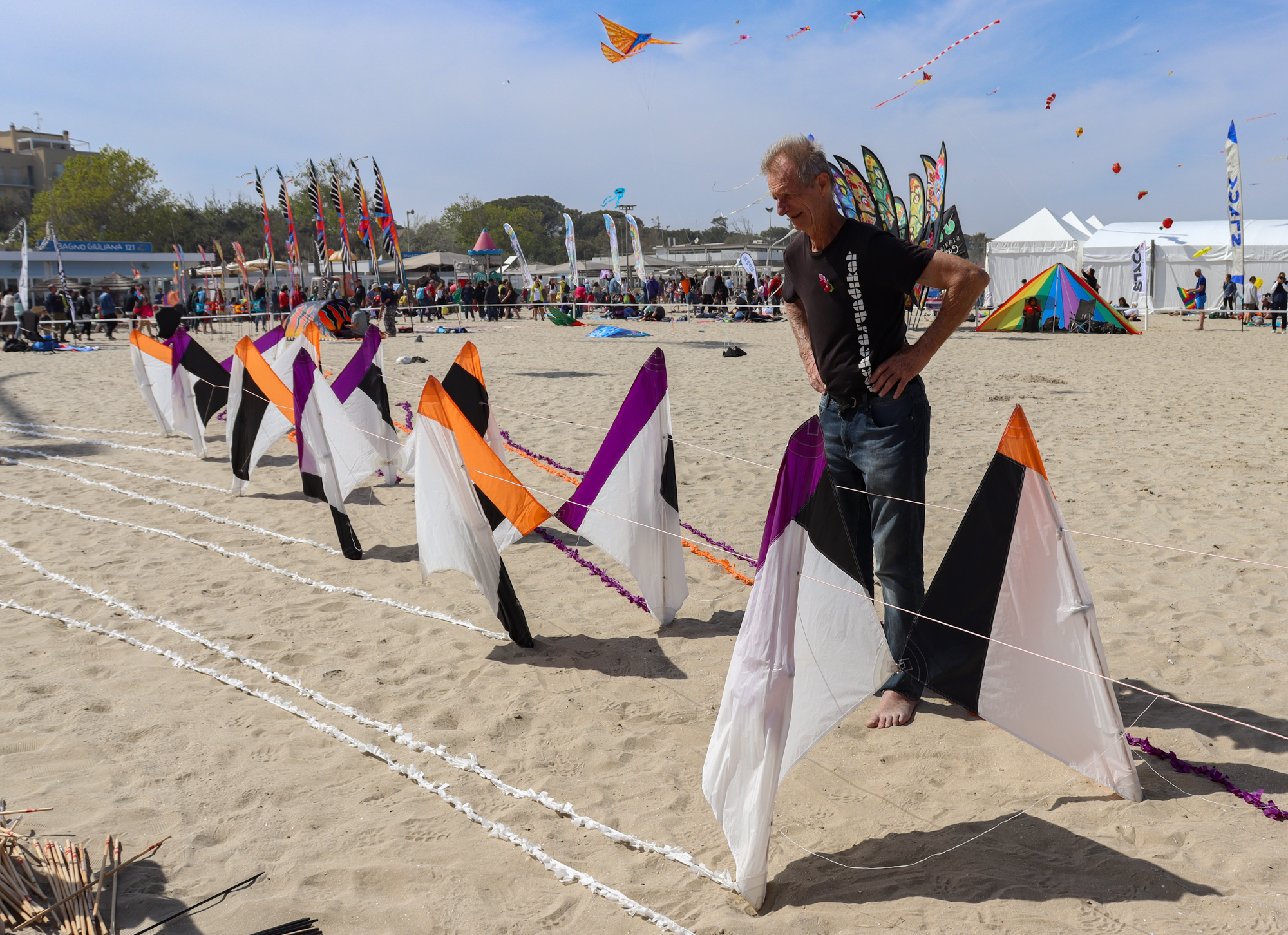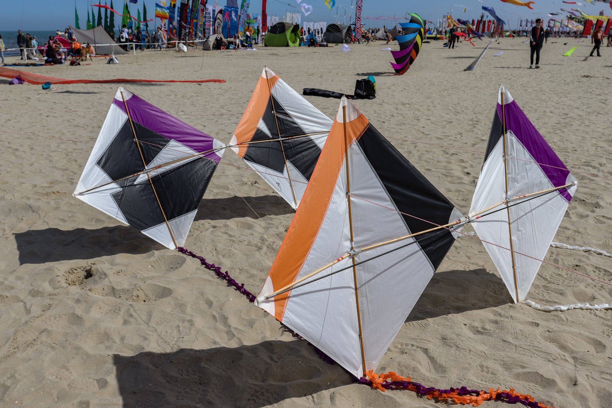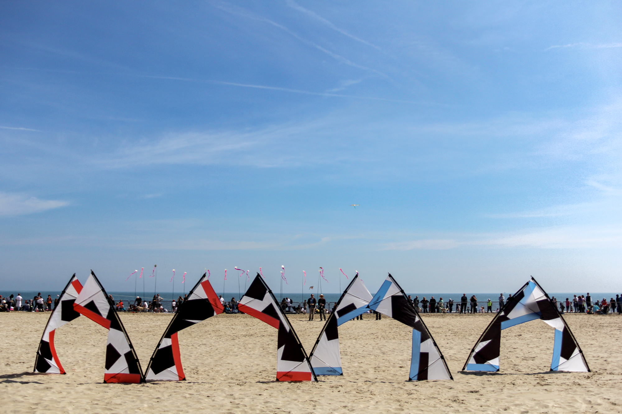 The flying lines were secured to a sand anchor and the stack extended with the top sails attached to 'sandbag' lines.
