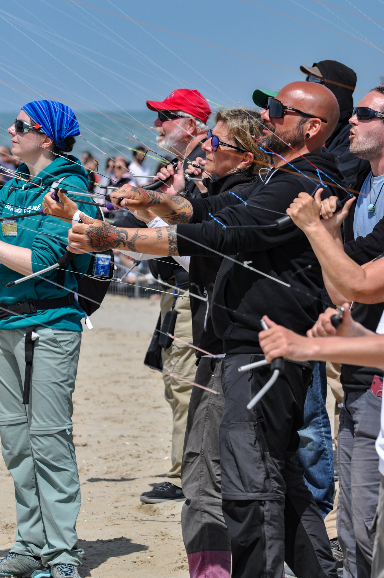 "I was just 'taking a break' when I realised that this was the low wind moment that I had anticipated and for which the 3m Rokkakus had been prepared." It was a 'triumph' in the sense that these kites were 'rock steady' at the top of the window on 60-70m lines.
