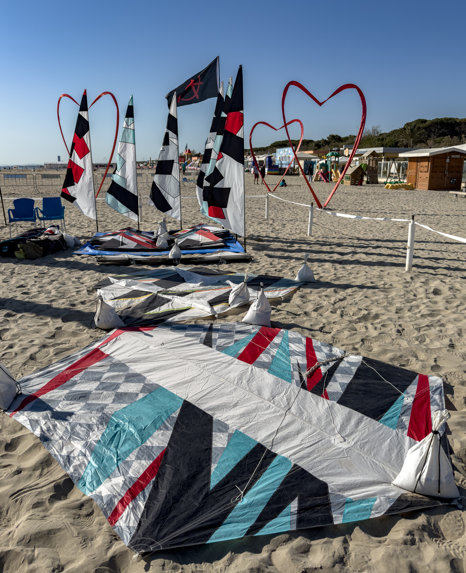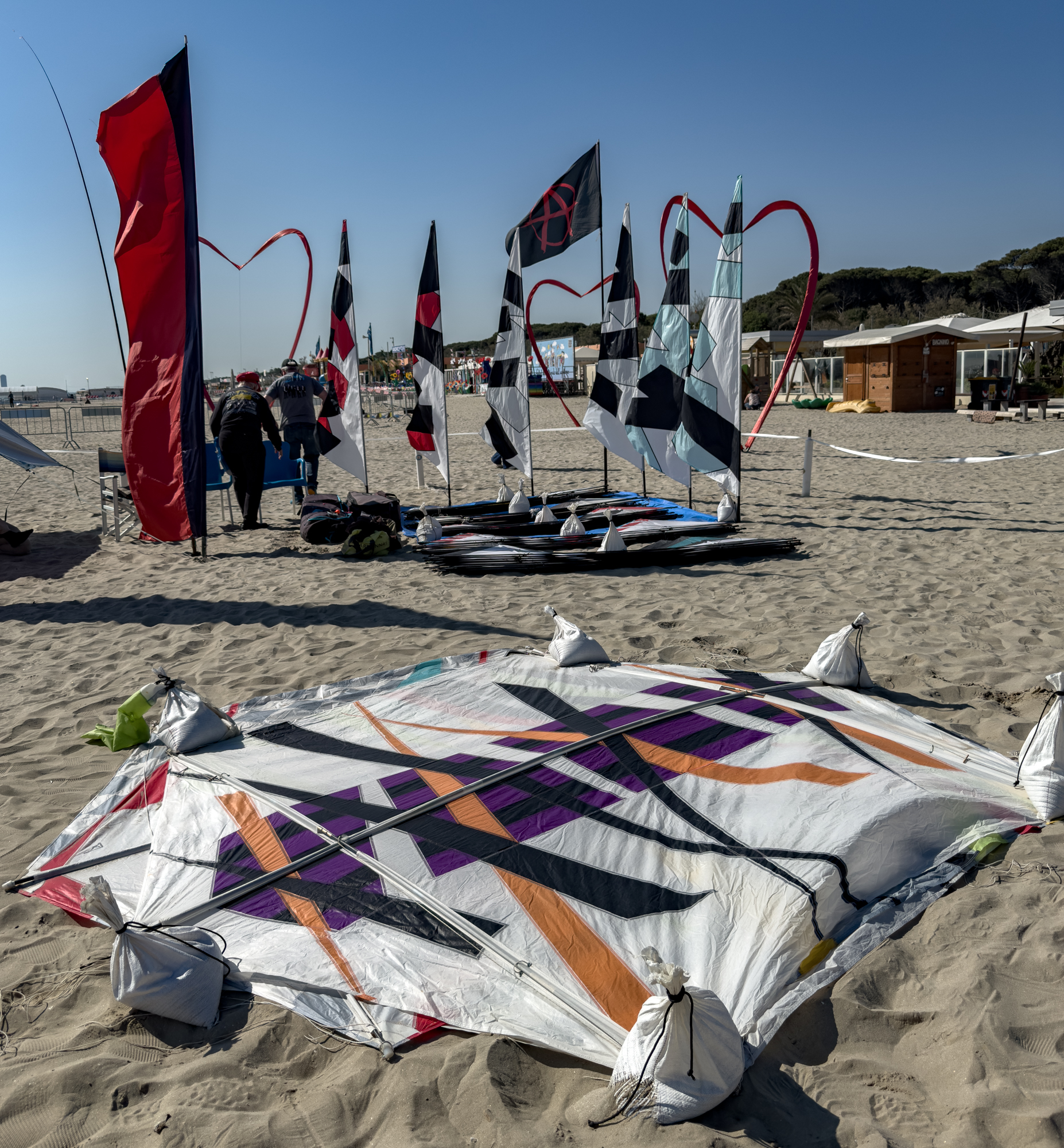 9:02am, 1st May 2025. The Rokkaku and Flare from Scott Skinner were set up first thing and flown with him soon after 10:00.