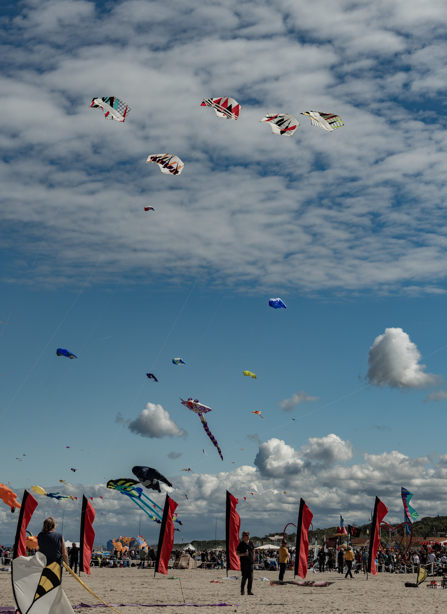 The wind conditions were near perfect and so the kites did not need to be worked in the sky. This was good because the fliers were not all experienced with flying large rokkaku kites.