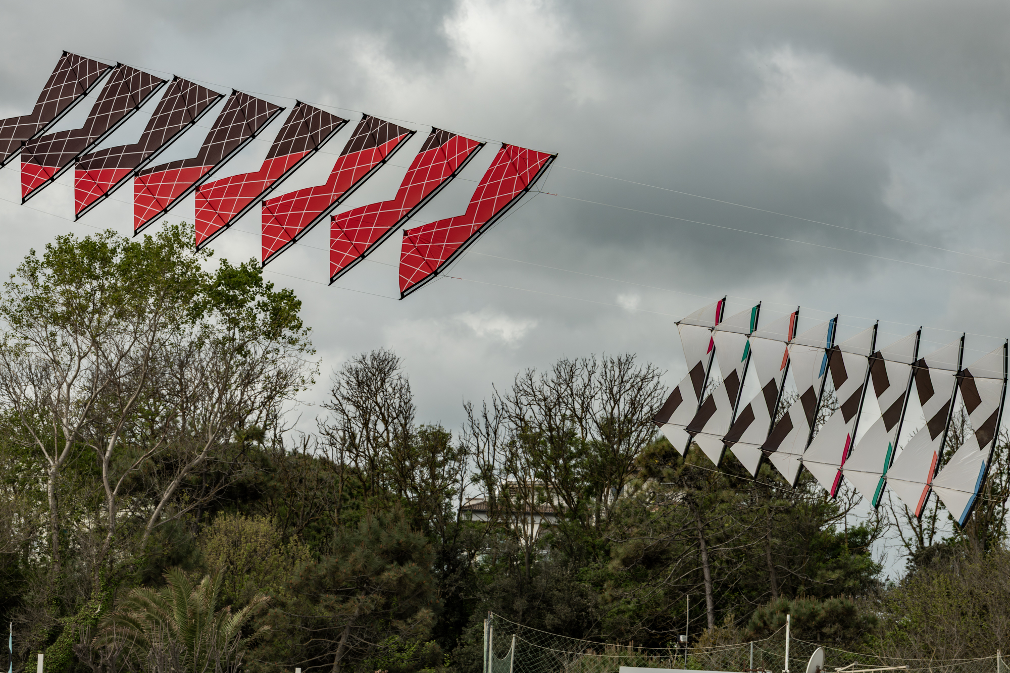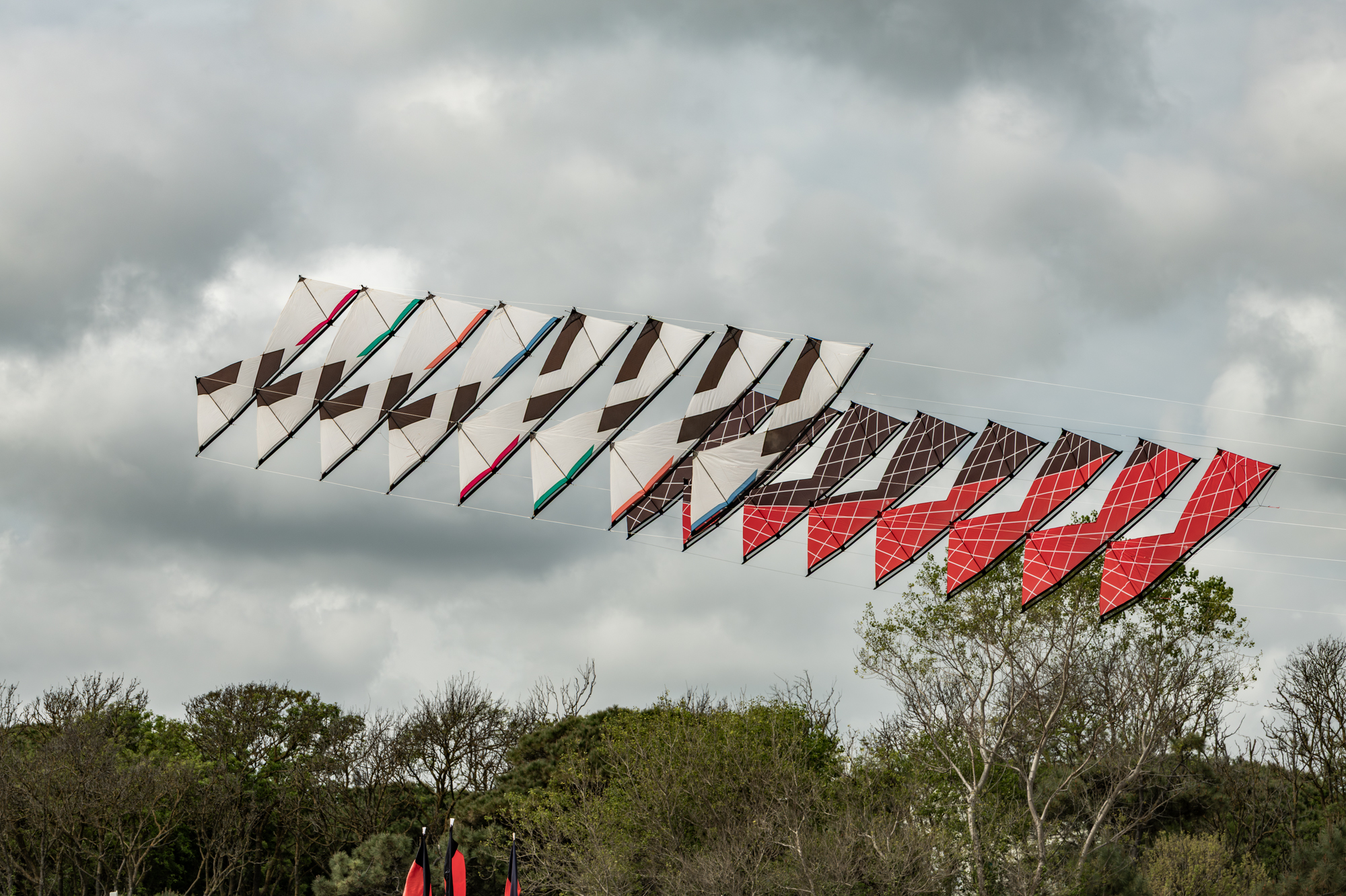 The 2008 Decs set needs some further adjustment as there are a few loose link lines and the final two kites are not engaging fully.