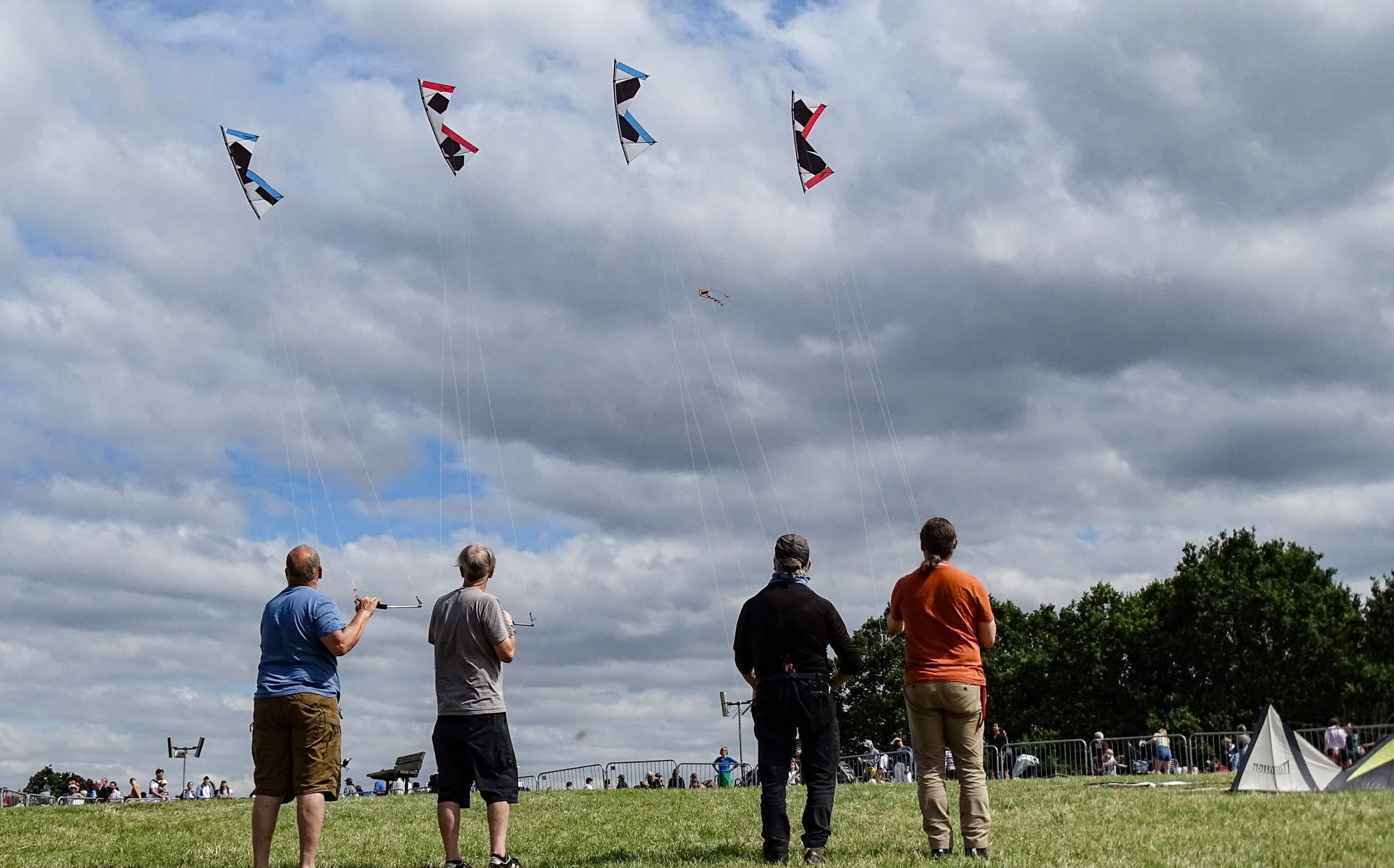 We took a selection of Jørgen Møller Hansen kites but the conditions and the proximity of other struggling fliers meant that we focused on flying the team kites on 100ft/30m lines and the Rev1 stack.