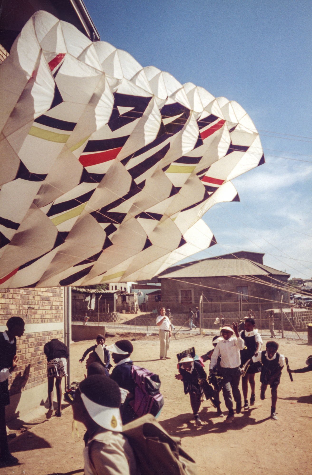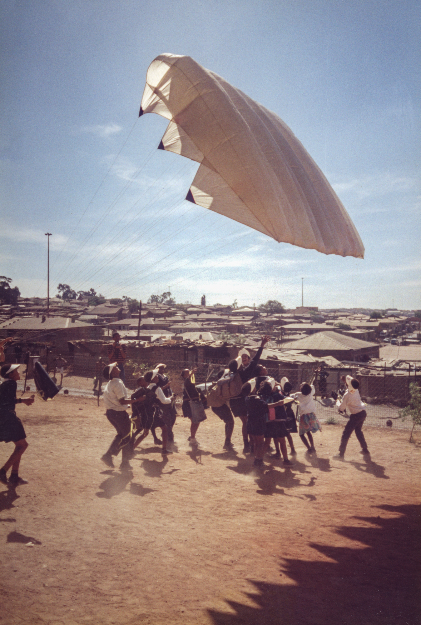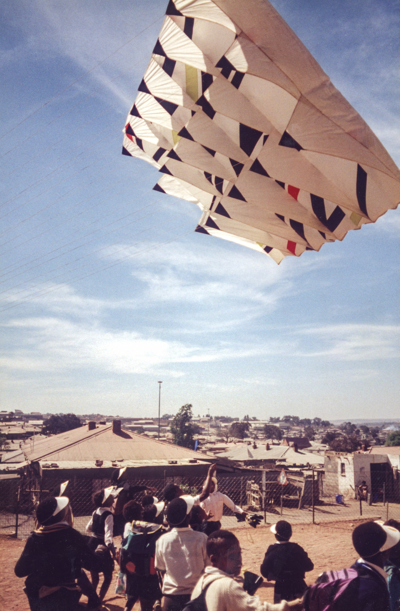 We flew the Parafoil on a short line at Alexandra in the school yard.