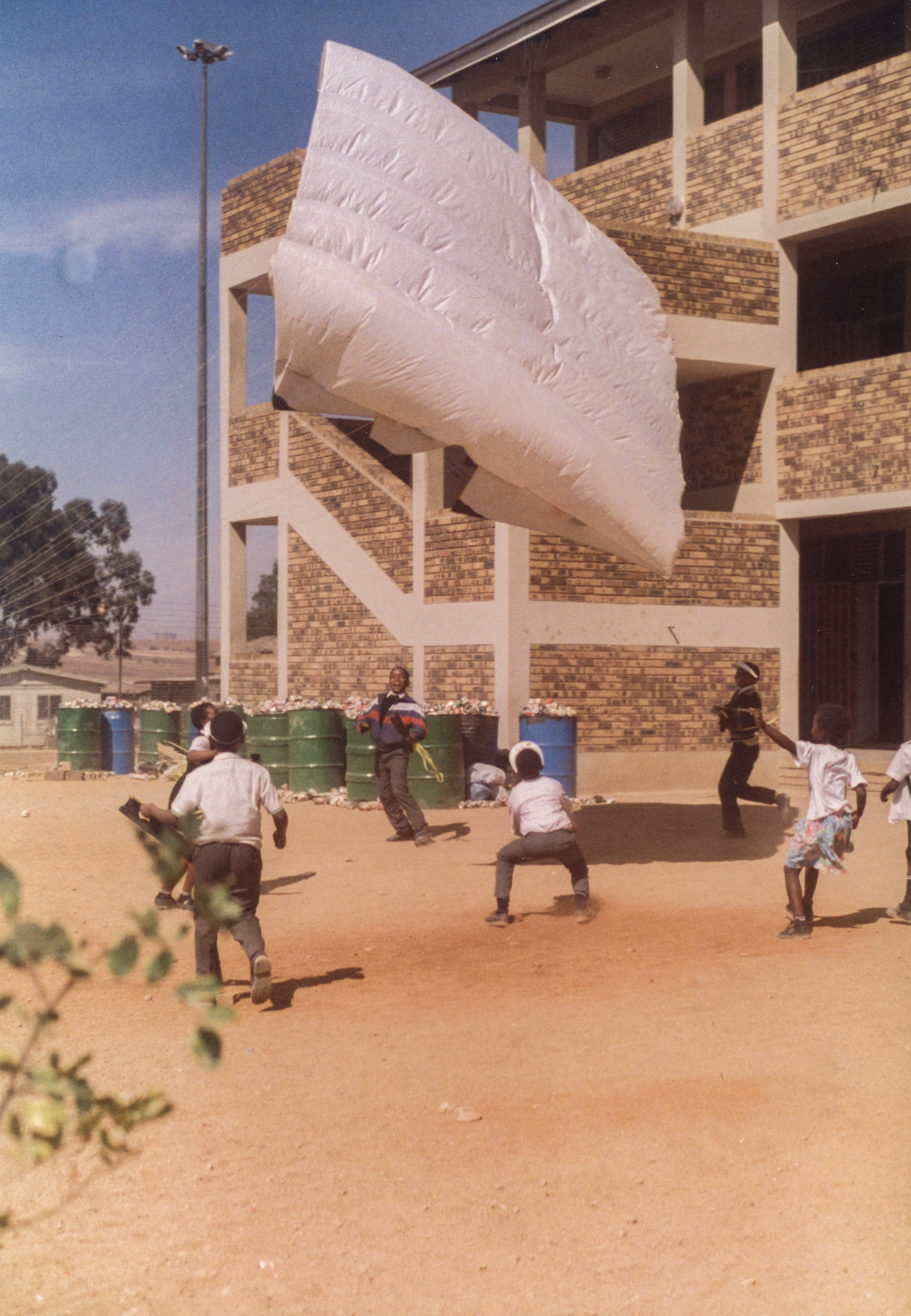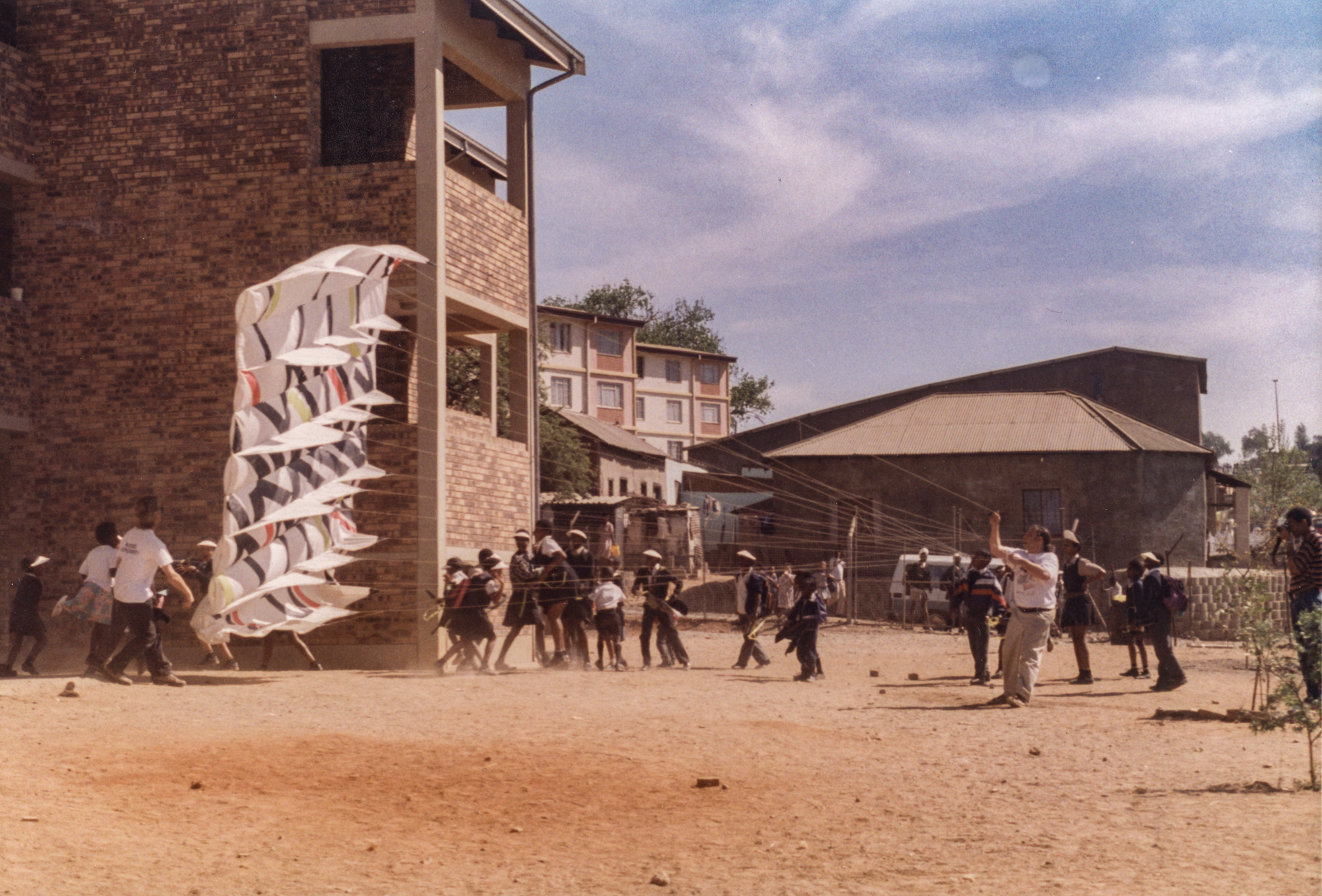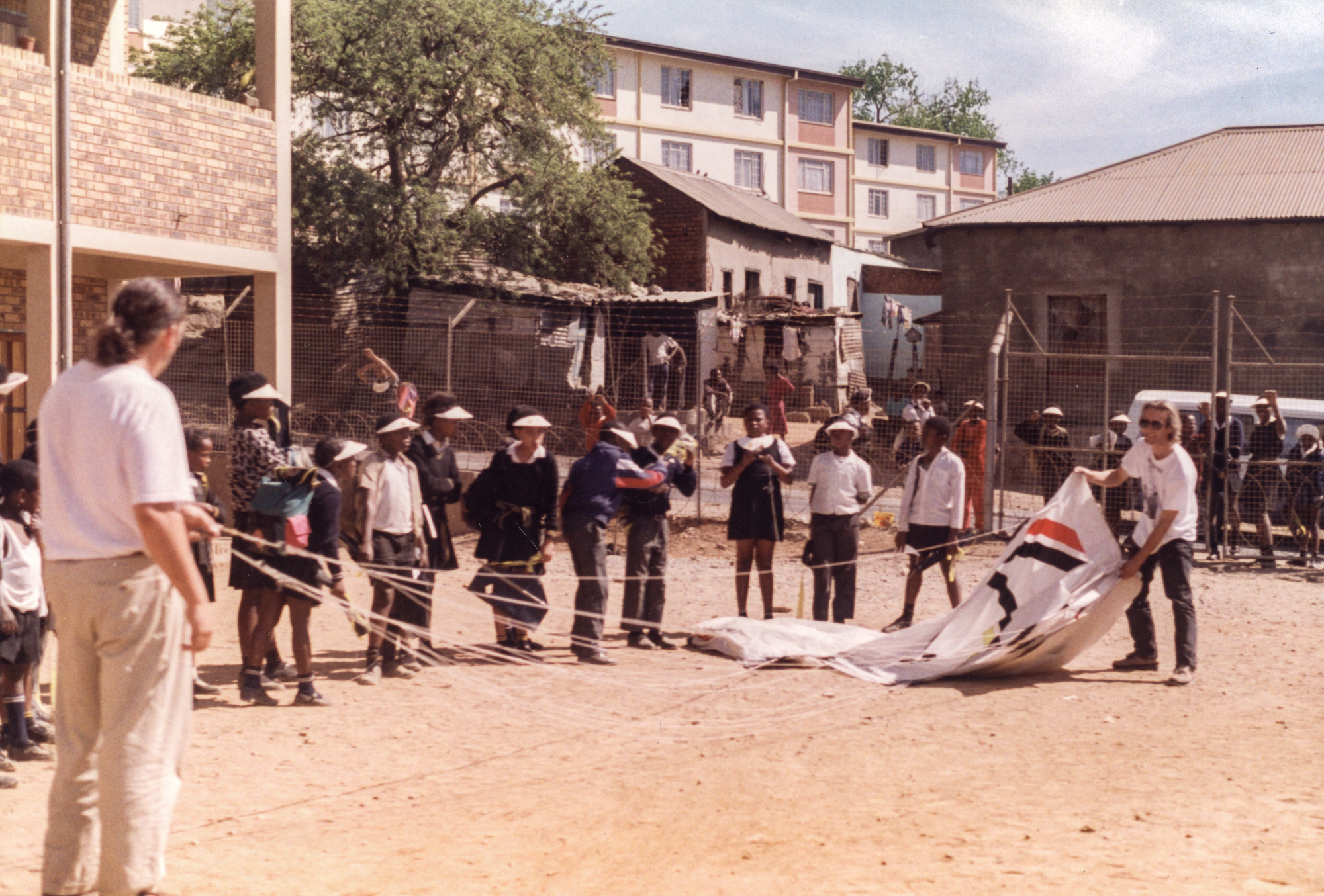 We flew the Parafoil on a short line at Alexandra in the school yard.