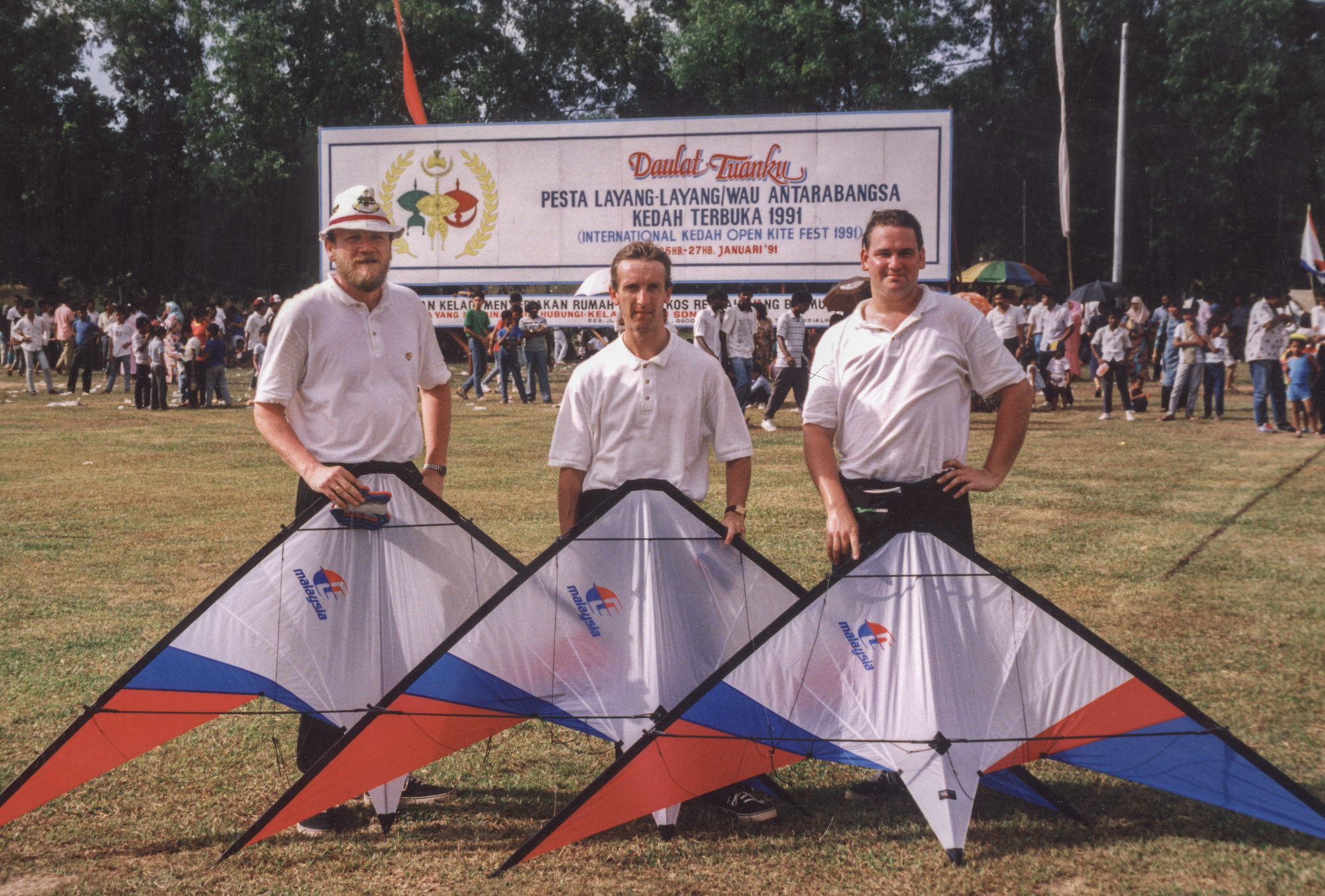 At Alor Setar we flew the Tim Benson kites that we had commissioned. We gave the kites to the Malaysian Airline kite team at the end of our stay. They took us to Port Dickson after the formal event.