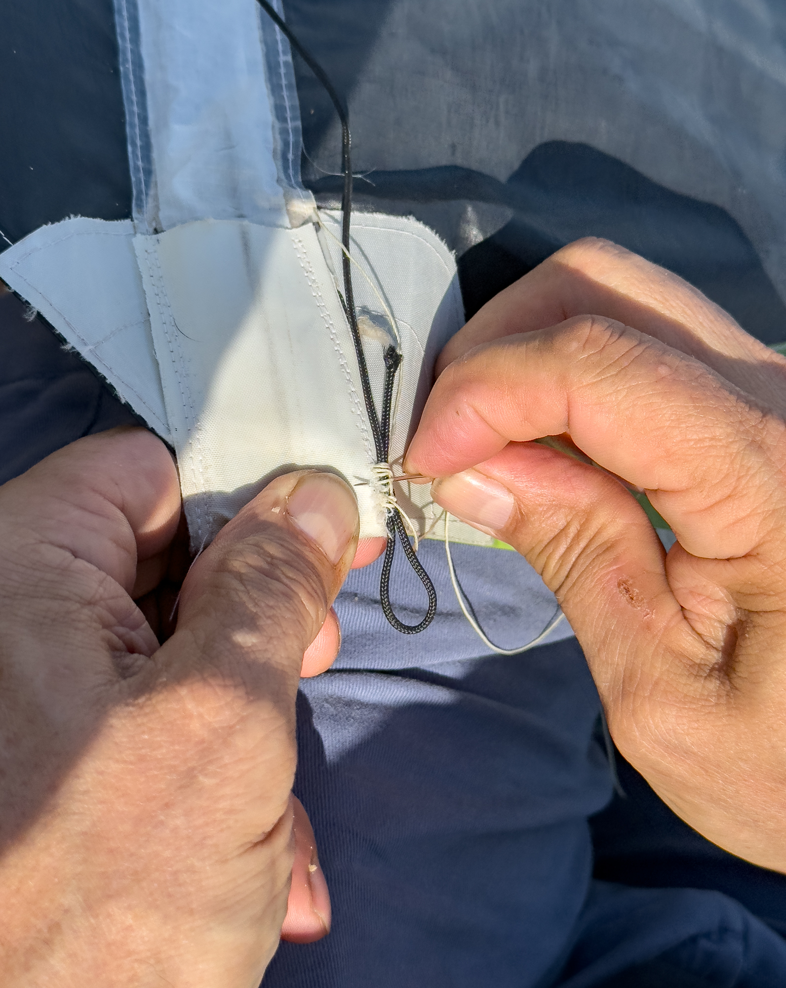 (16:31) The 1988 Flare had no fixing points for tails so two loops were sewn in place on the field by Jacob.
