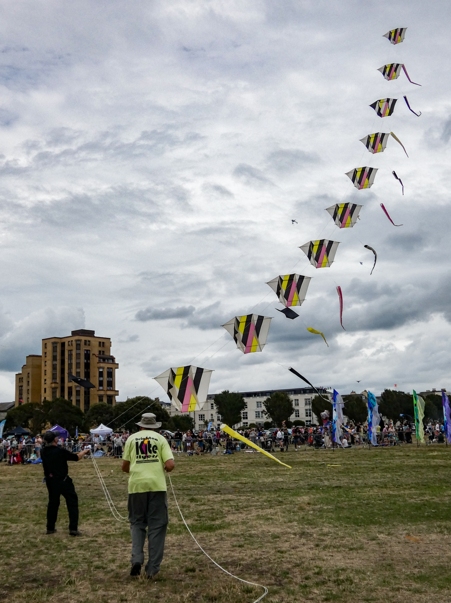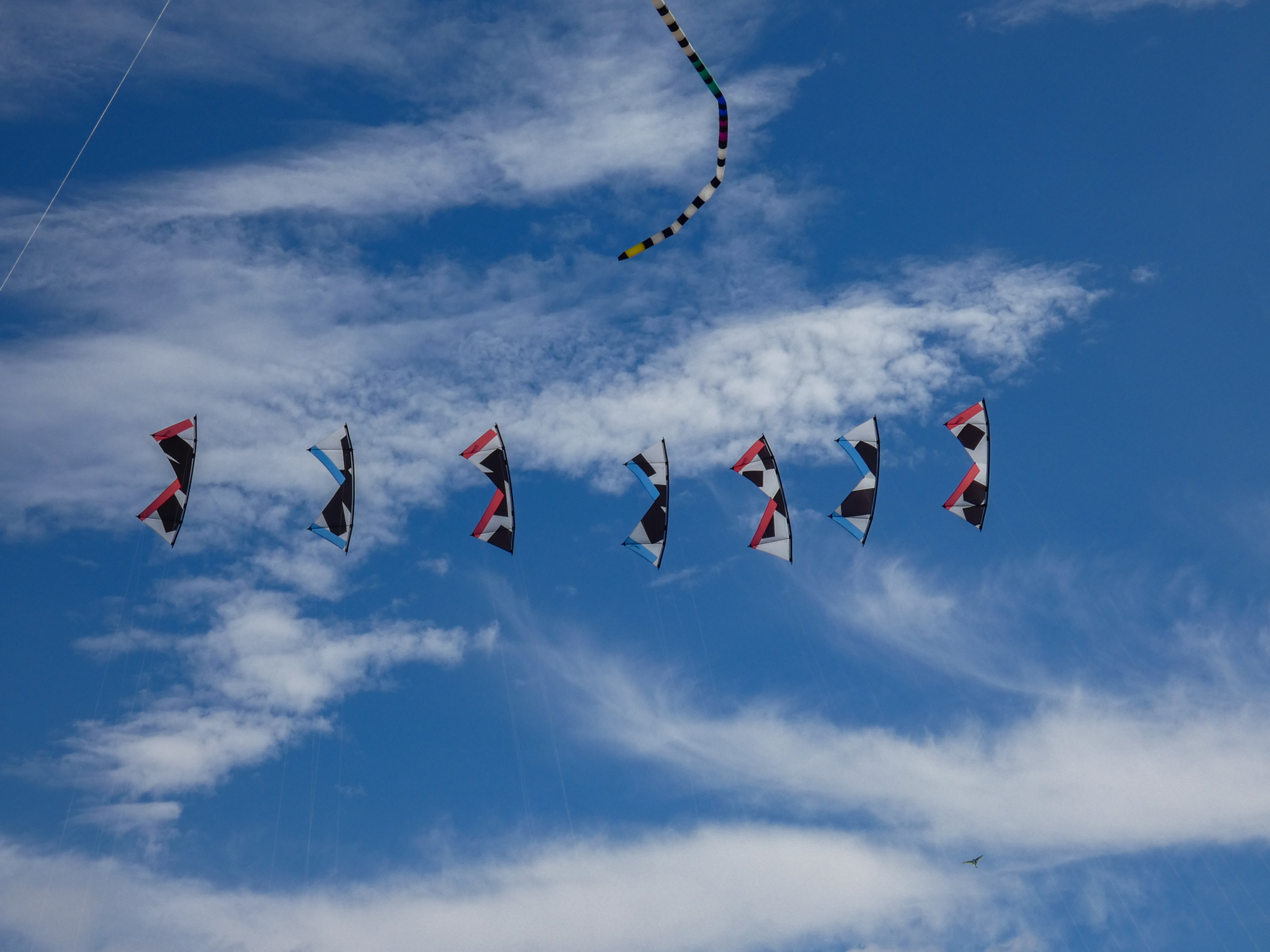 There was just enough wind to keep the stack airborne and we were eventually able to use an extended flying line.