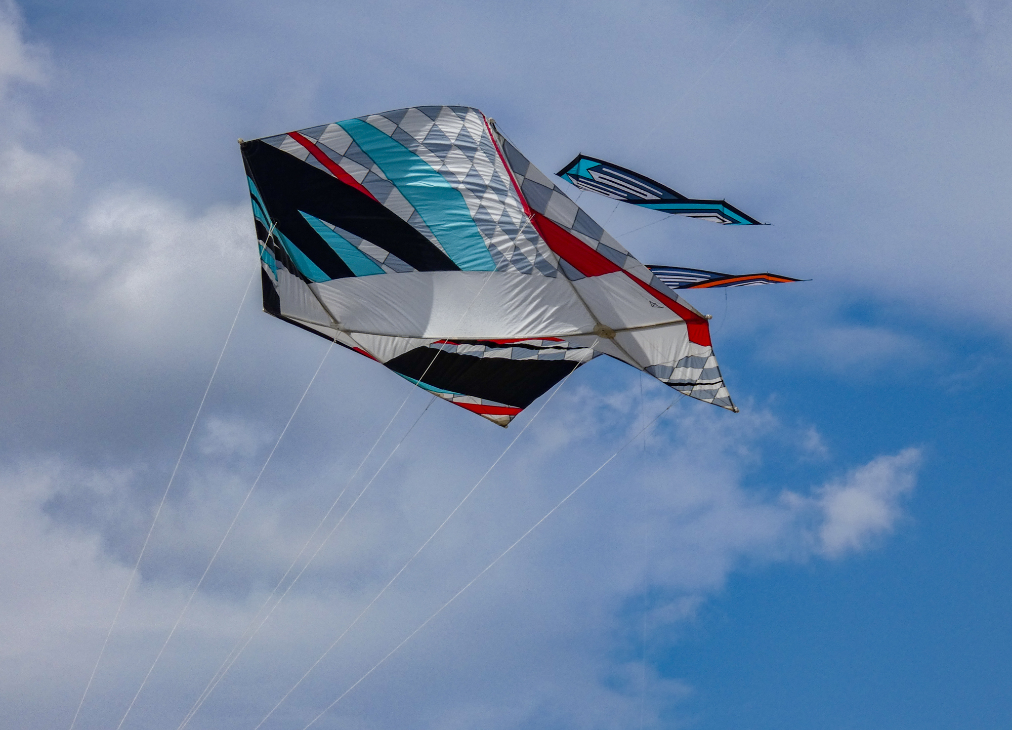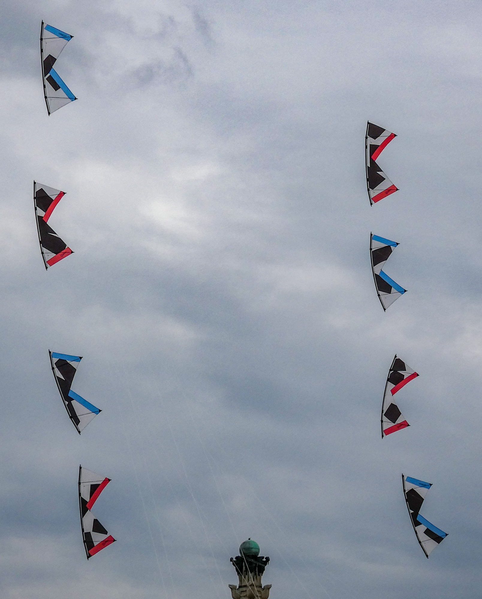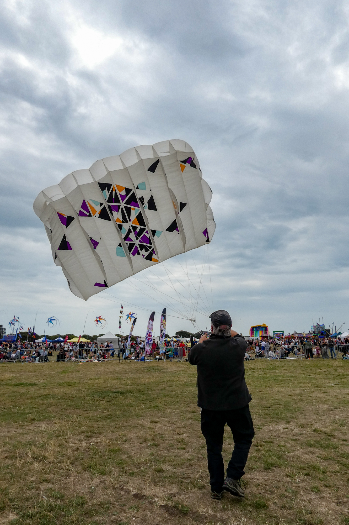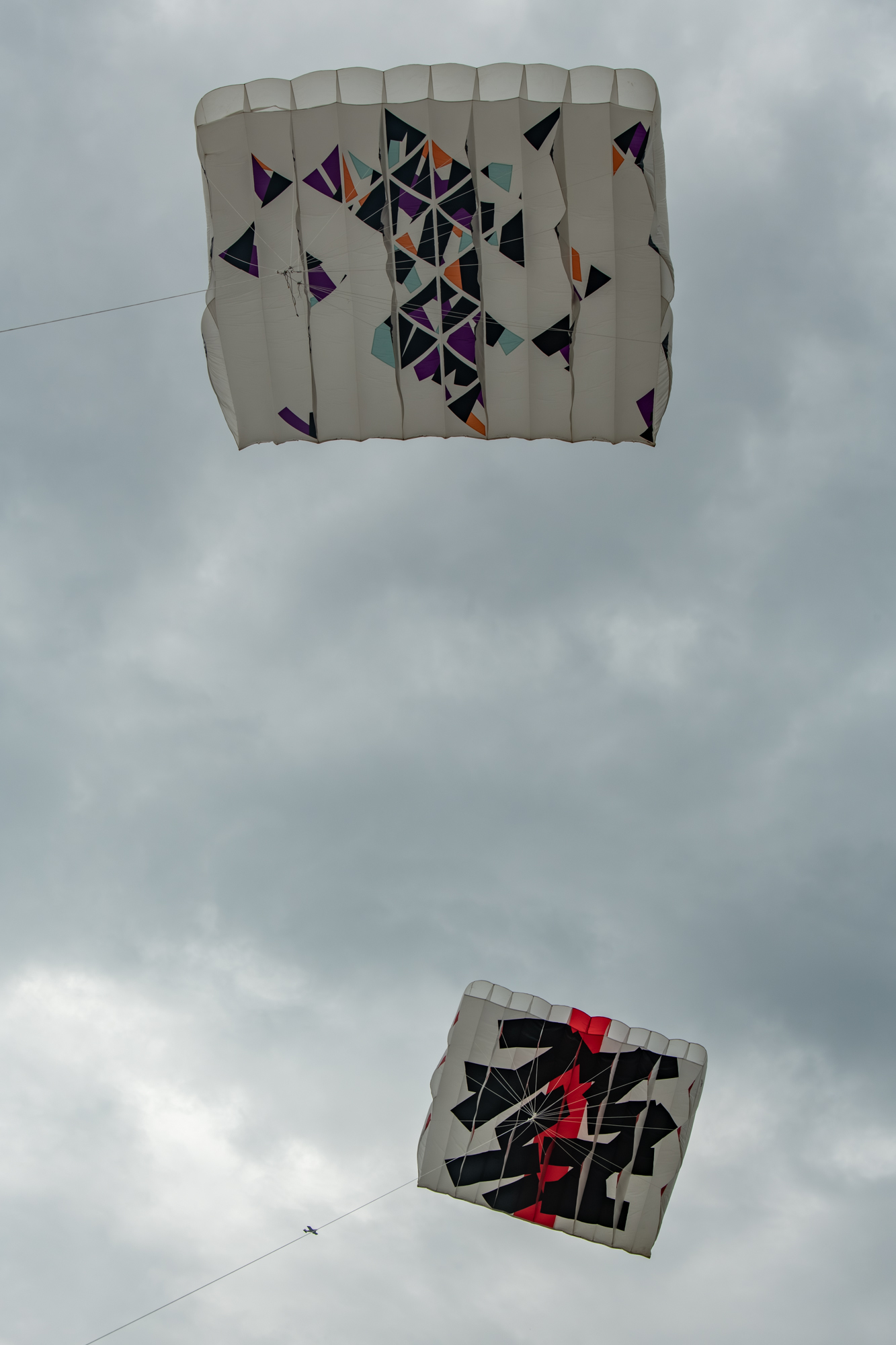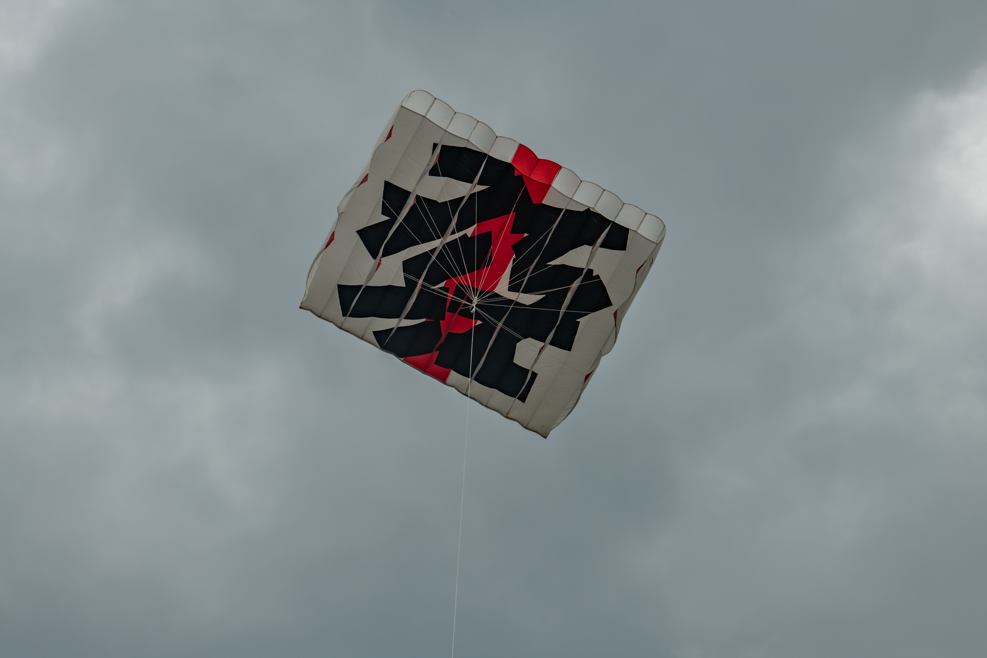 The larger kite was tending towards topping out so the flight was quite short after an interim re-launch proved to be more time consuming than it should have been. The kite was not moved far enough out of the centre of the window before inflation was attempted!