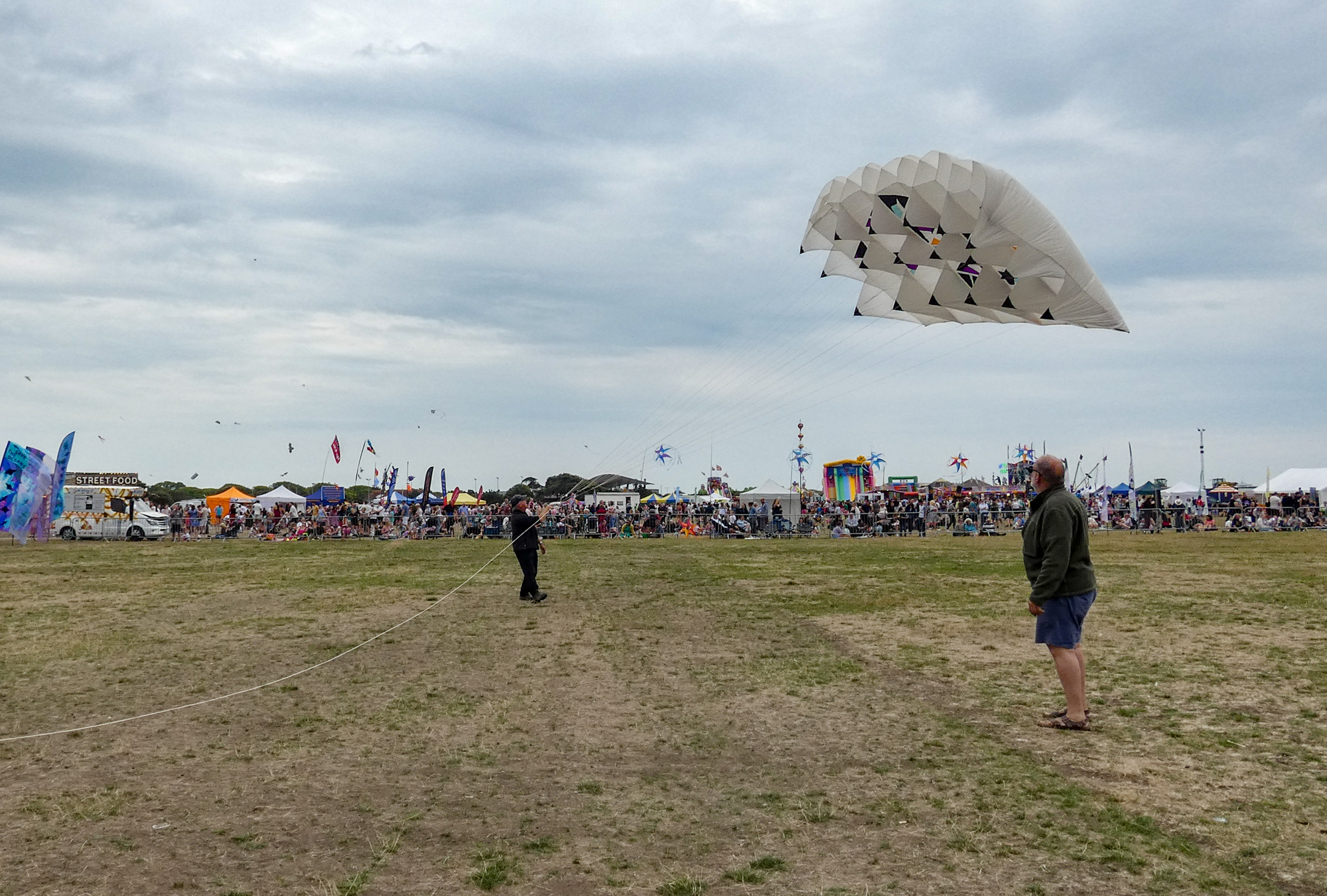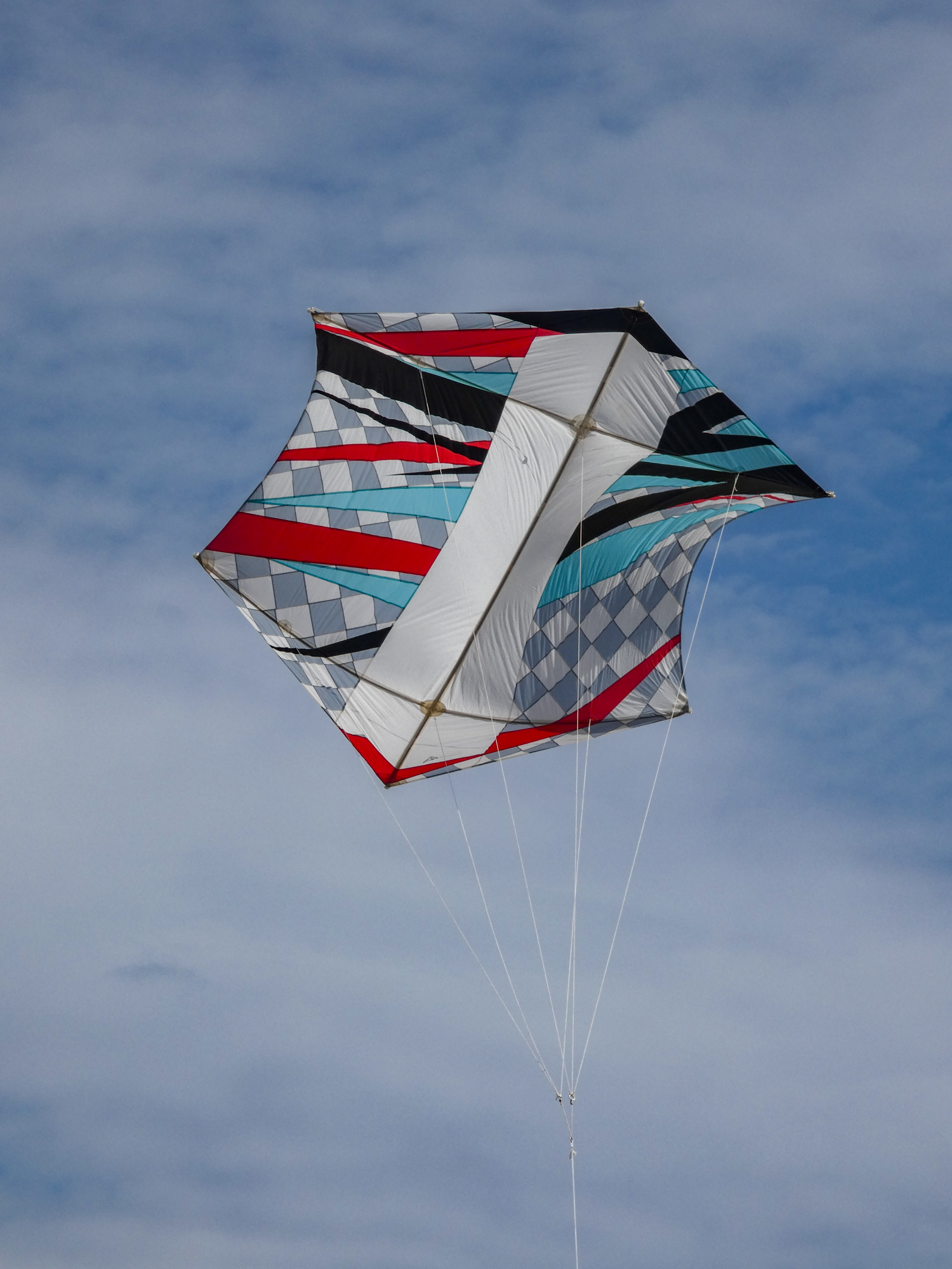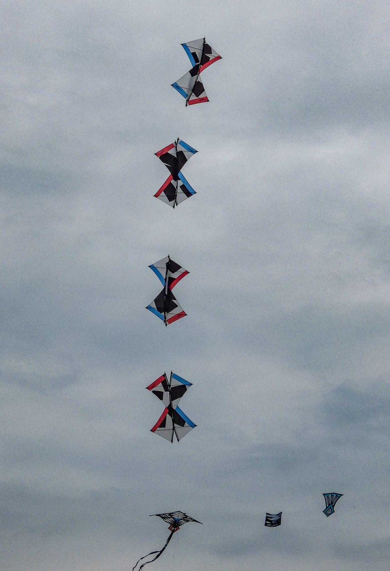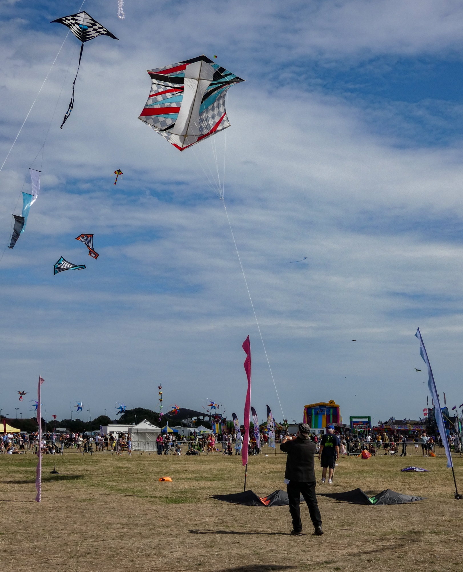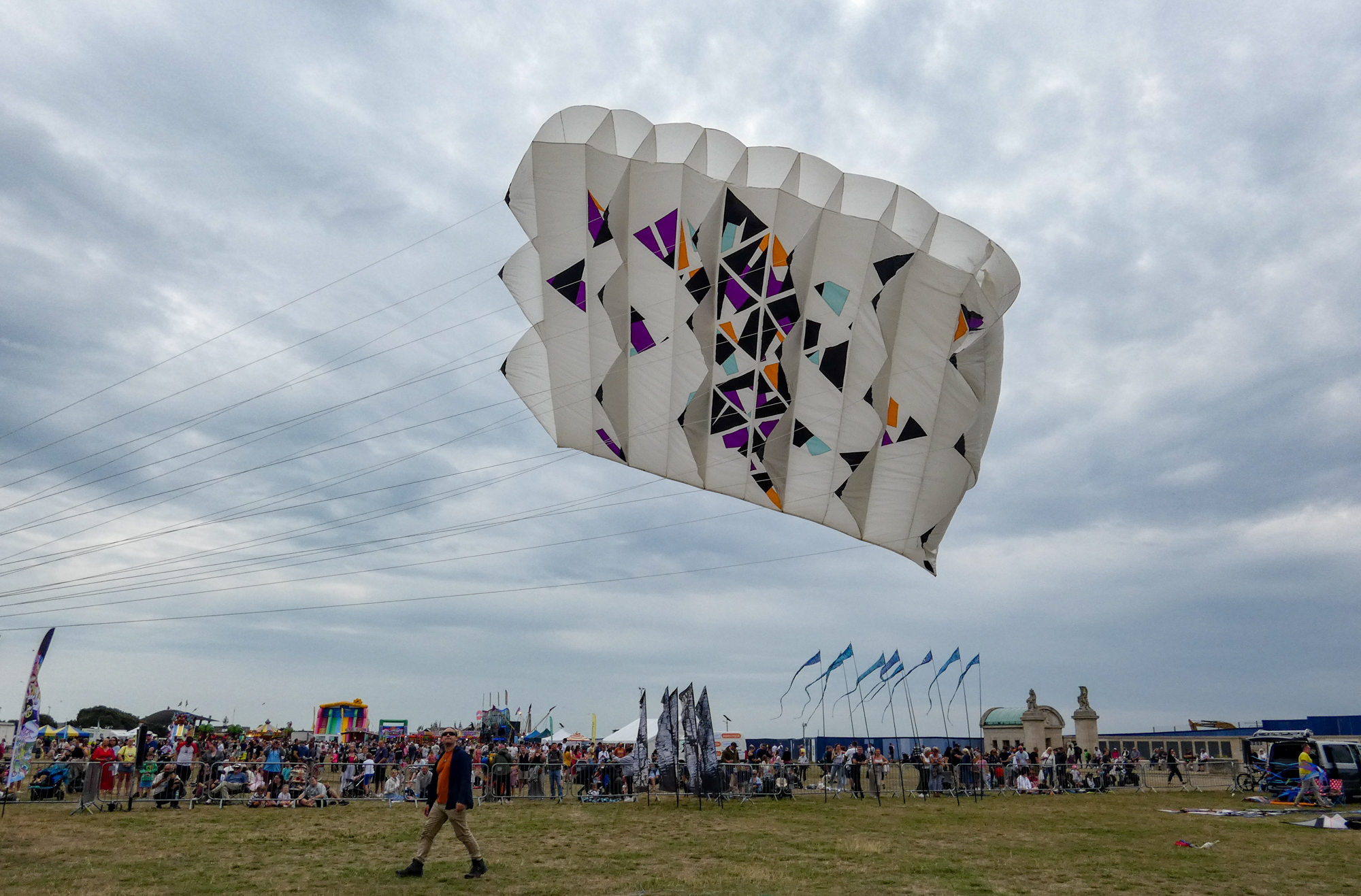 The larger kite was tending towards topping out so the flight was quite short after an interim re-launch proved to be more time consuming than it should have been. The kite was not moved far enough out of the centre of the window before inflation was attempted!