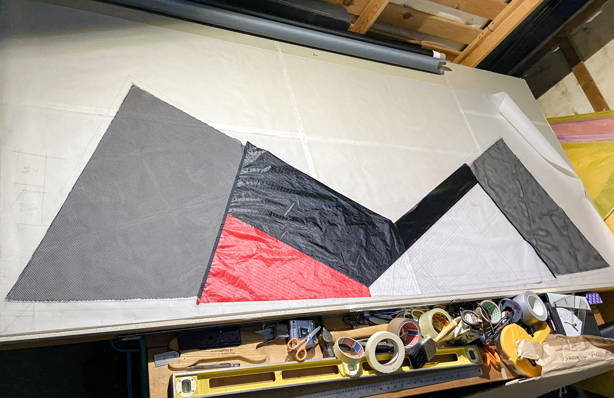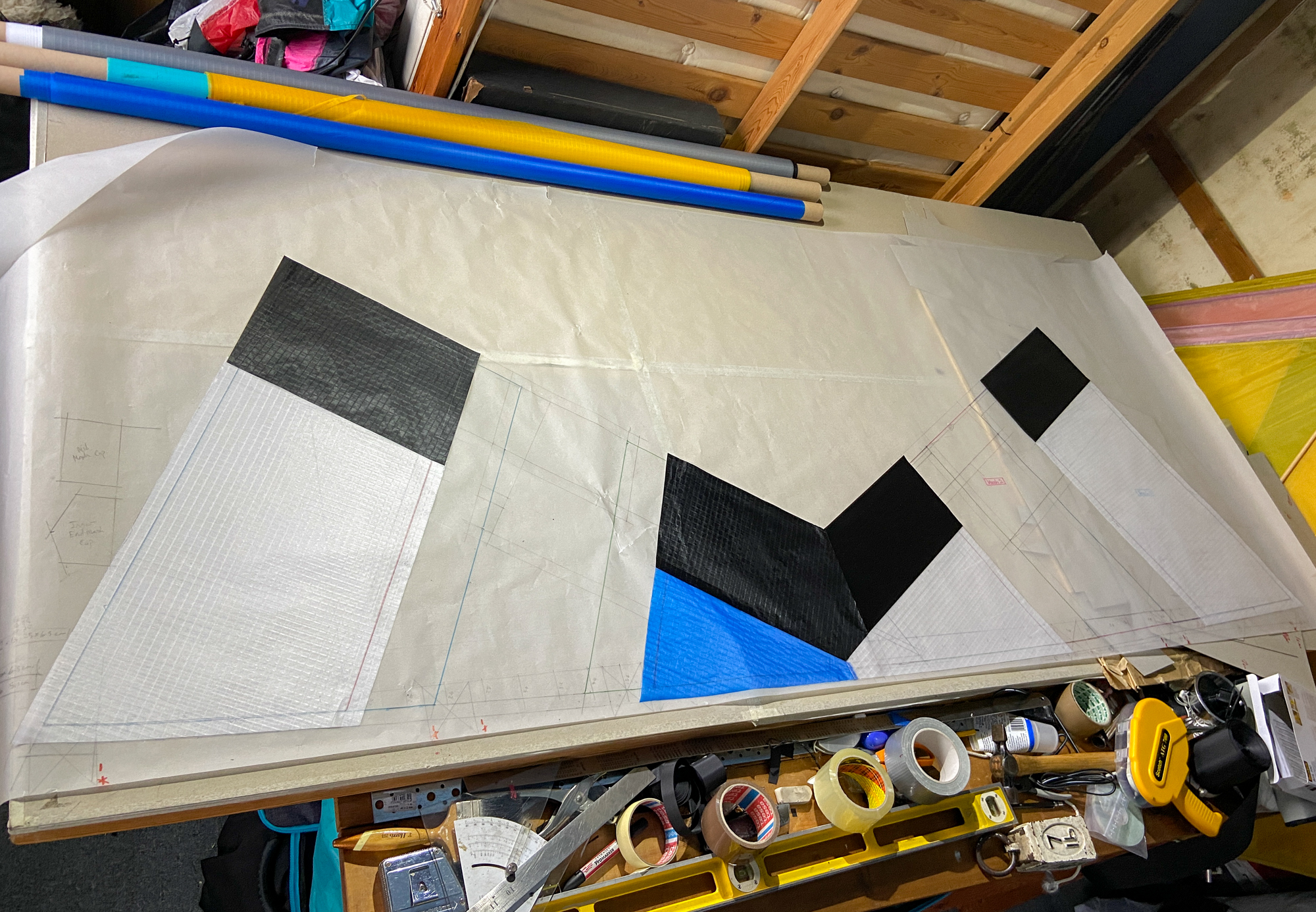 Blue Icarex arrived from Germany, 15th November 2022. All the components are now prepared for fabrication and the initial sewing of the Icarex is done, 16th November 2022.