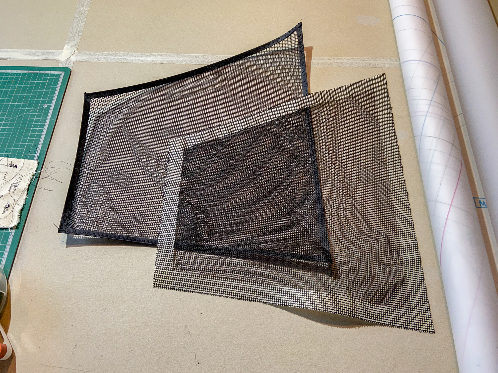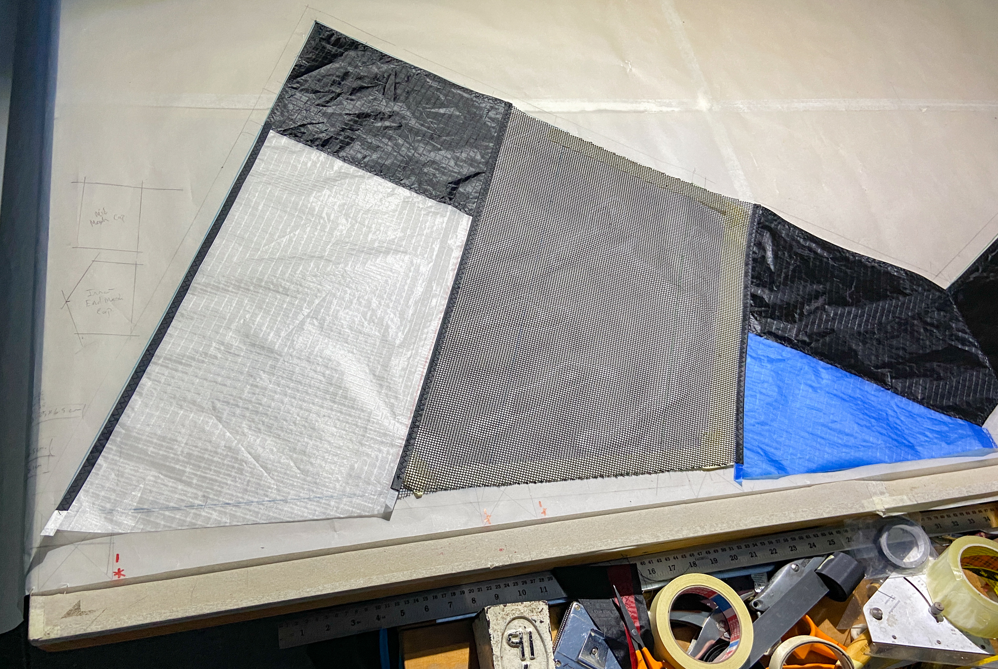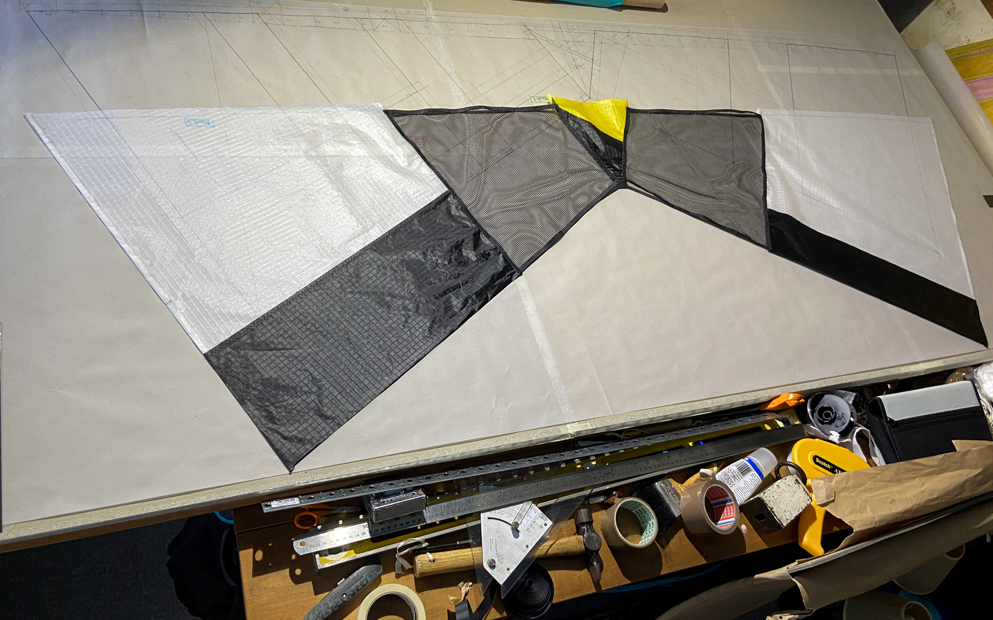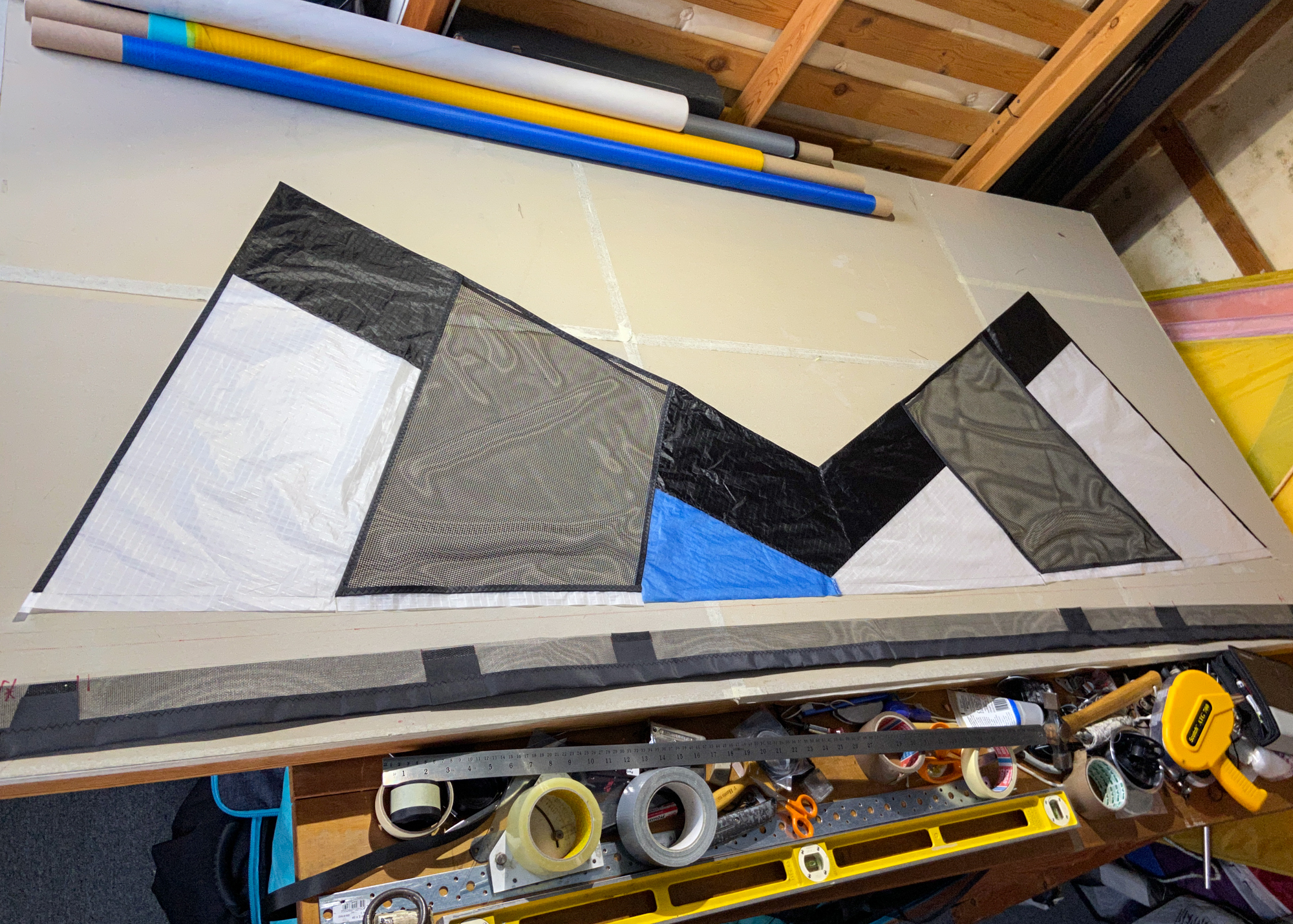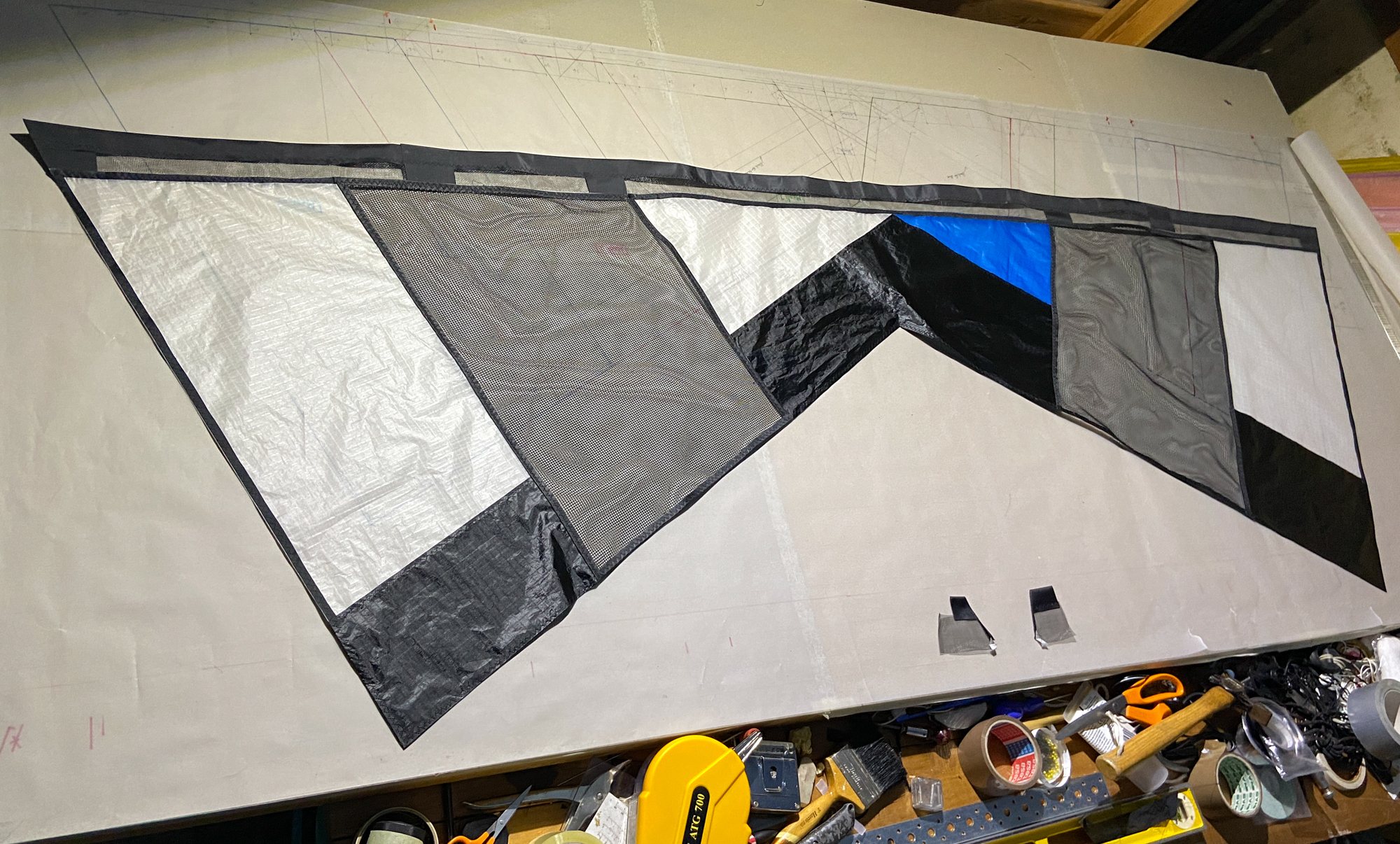 The mesh element was seen as disposable element that would be replaced by a grey sail component in the event that the sail does not work. The elements were cut carefully and hemmed with dacron producing a complete component.
