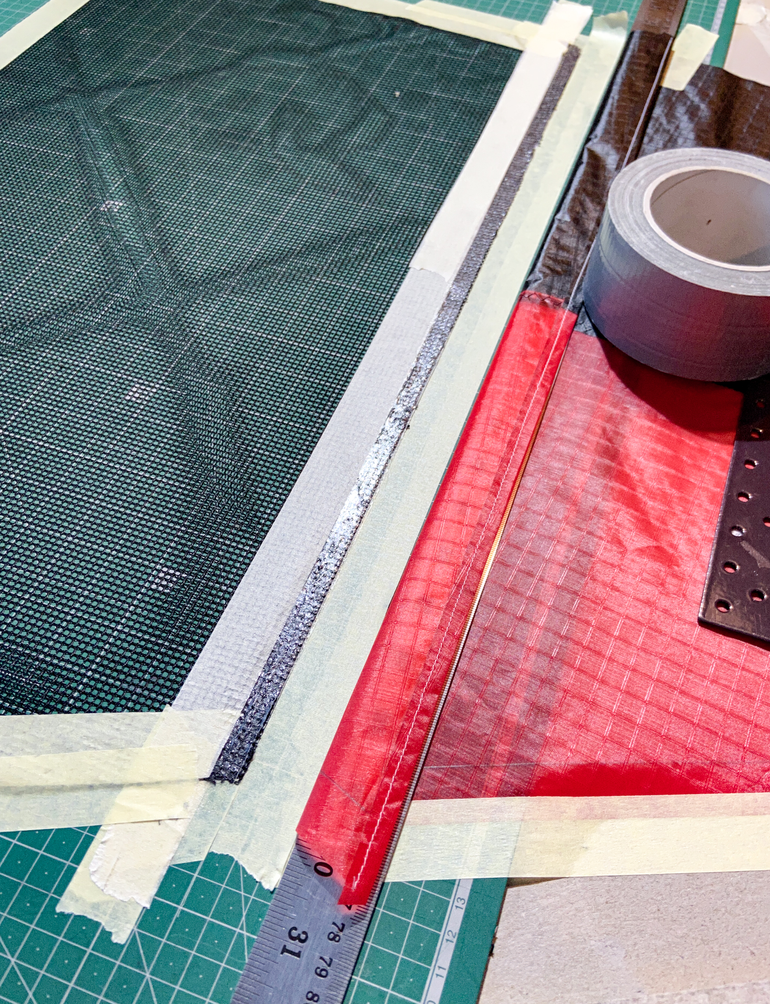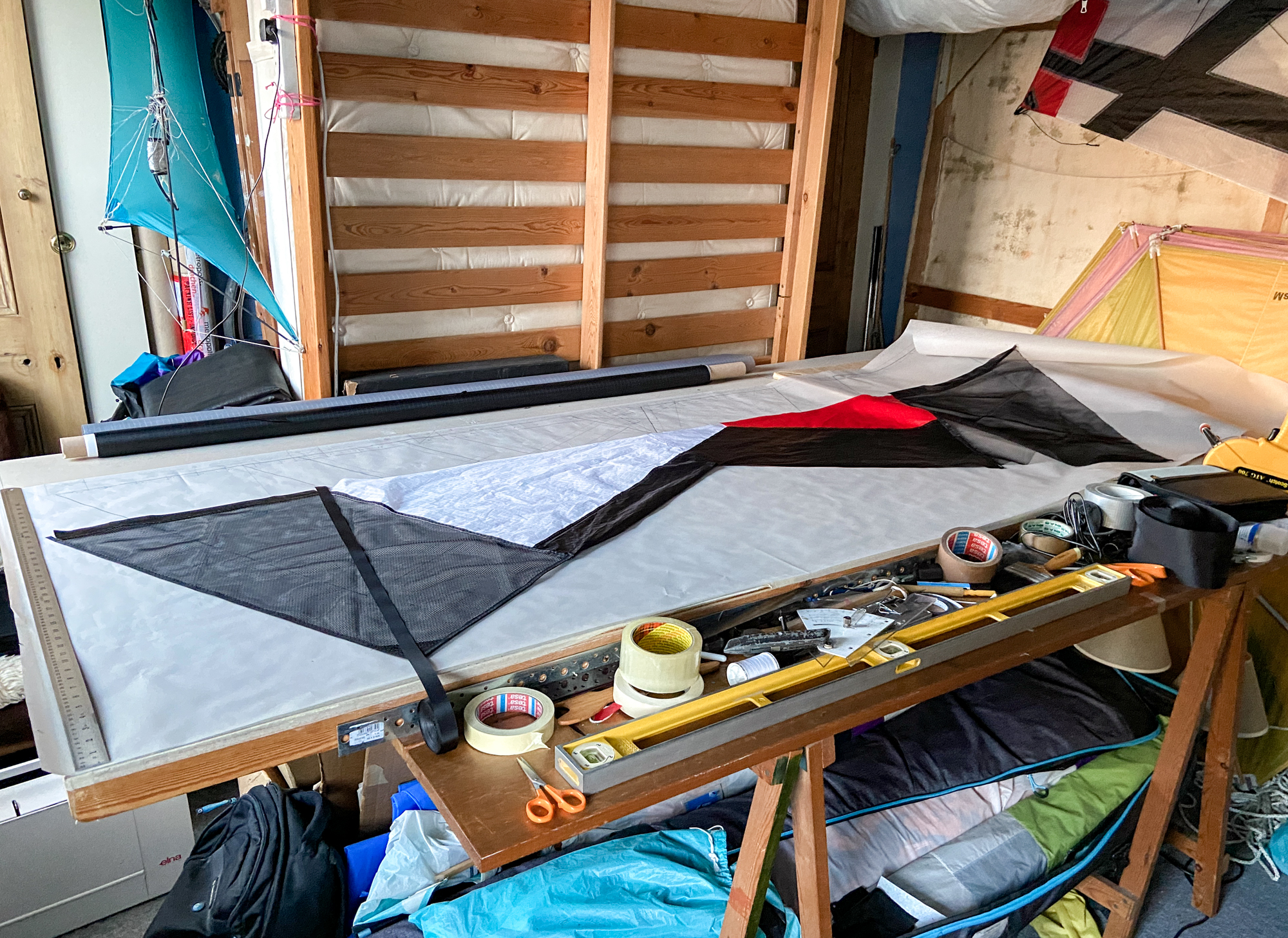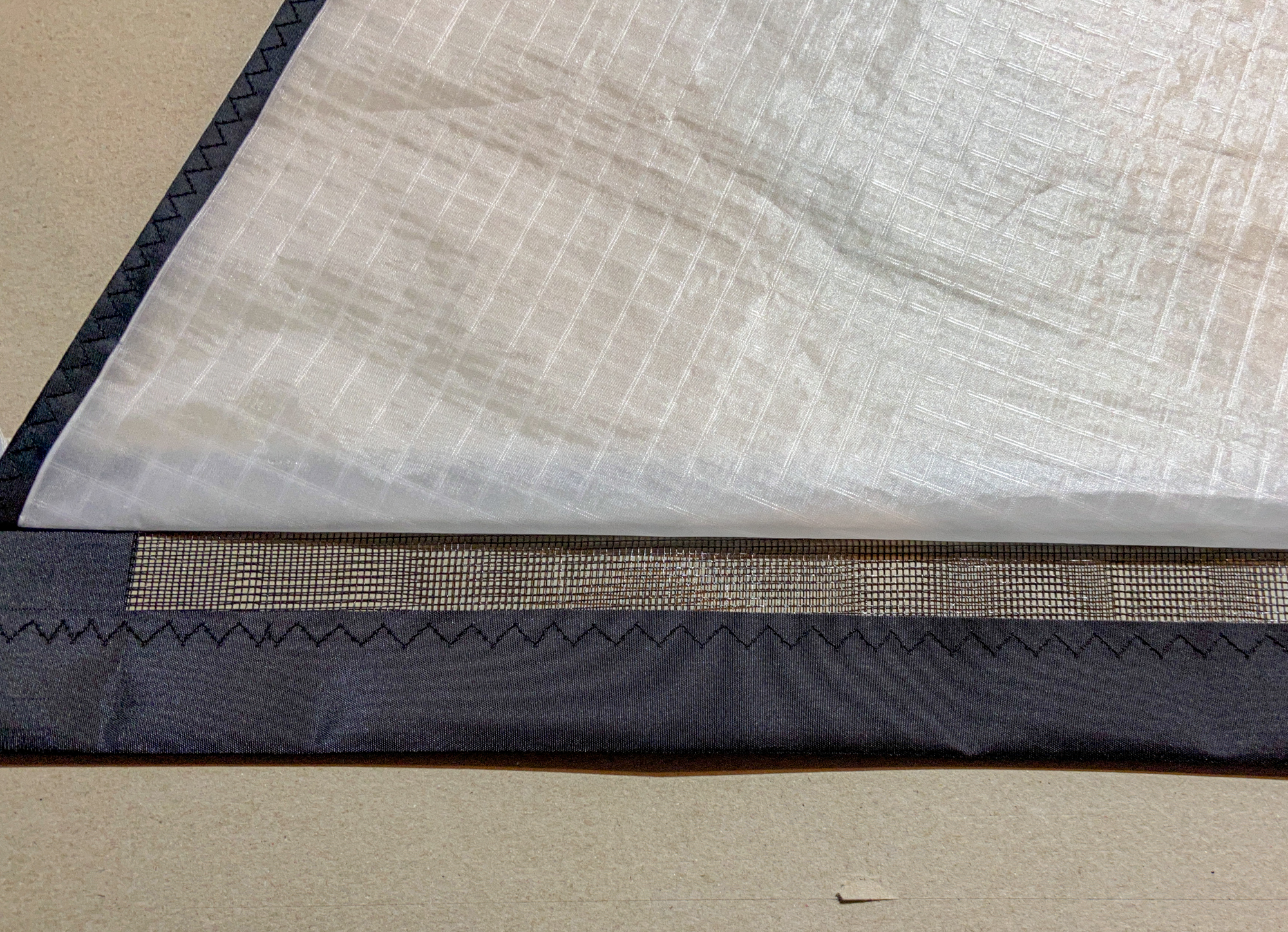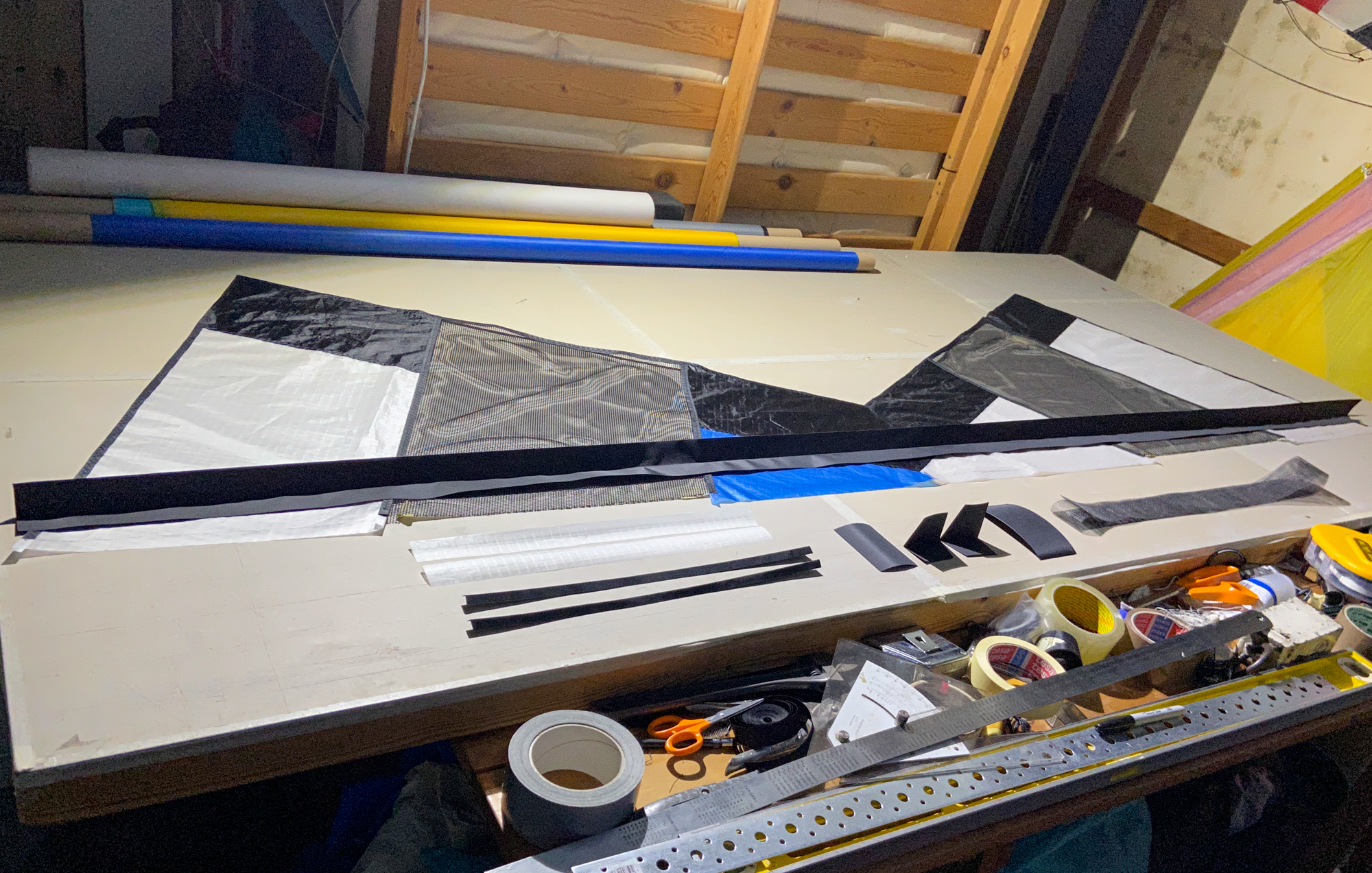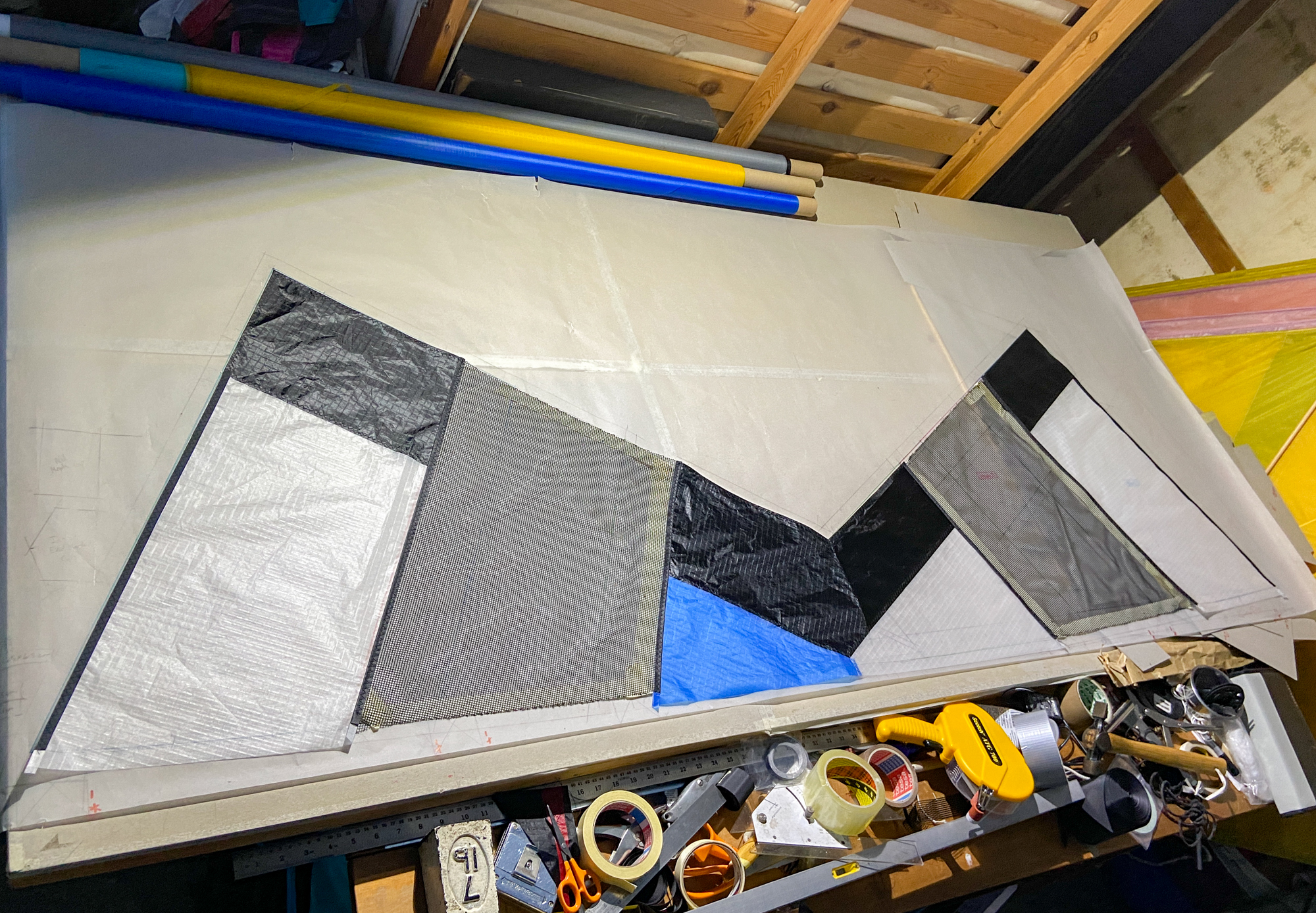 The mesh element was seen as disposable element that would be replaced by a grey sail component in the event that the sail does not work. The elements were cut carefully and hemmed with dacron producing a complete component.