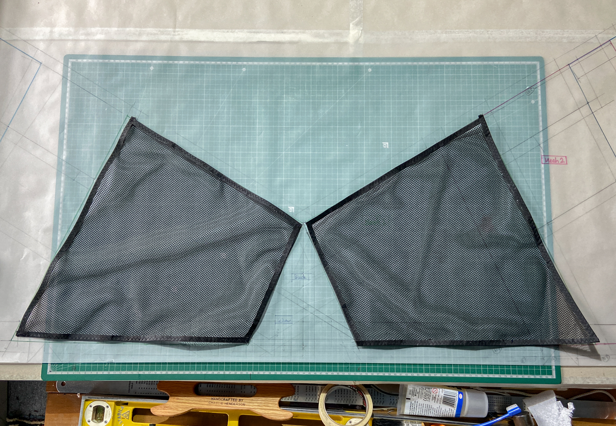 Spar strips added... Kevlar diagonal mesh lines prepared, 26th November 2022.