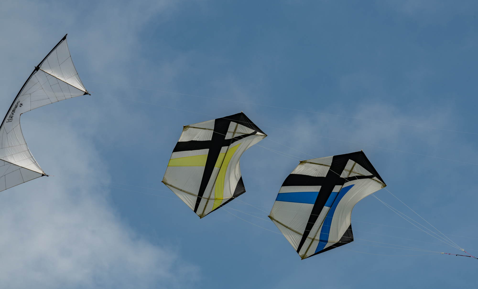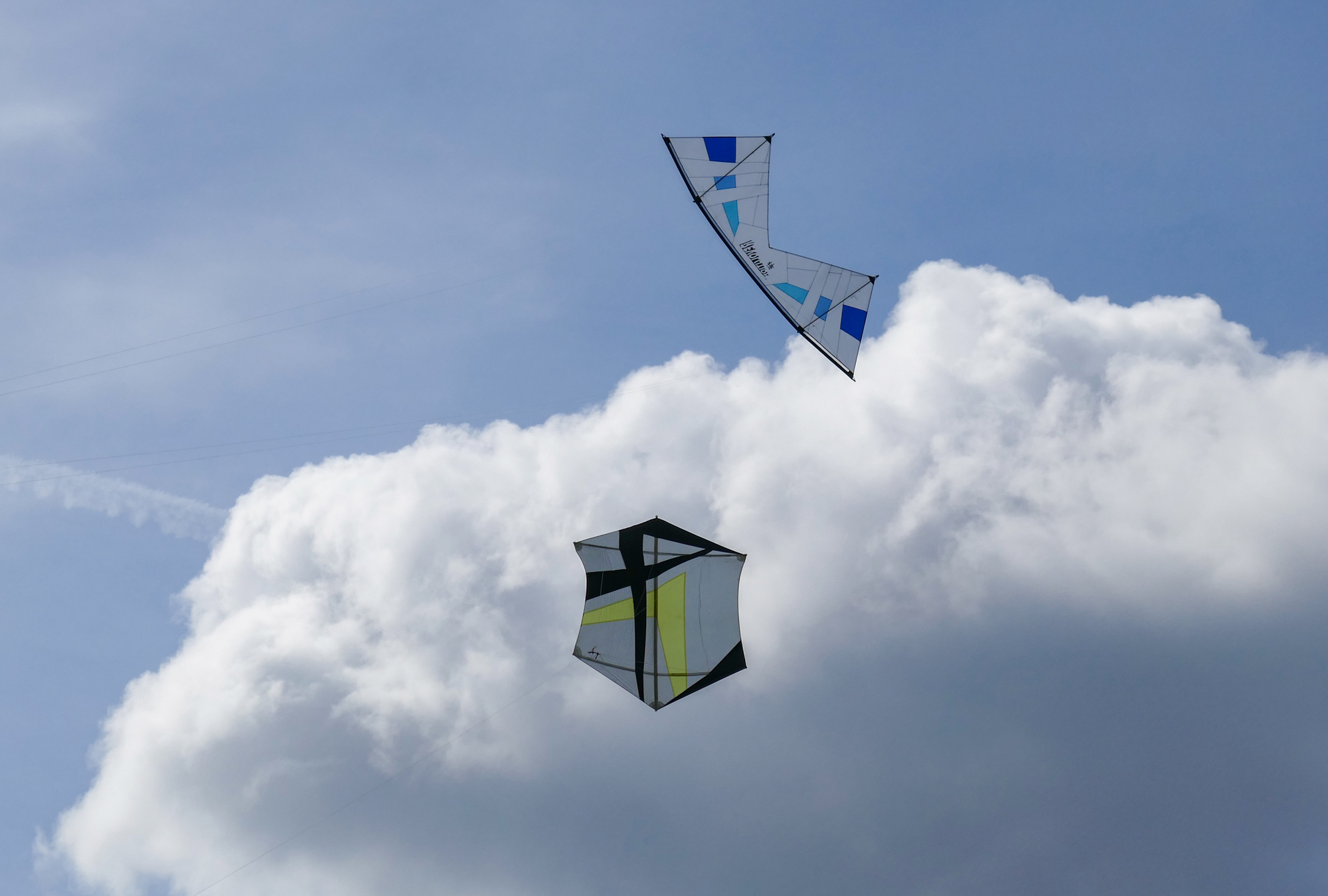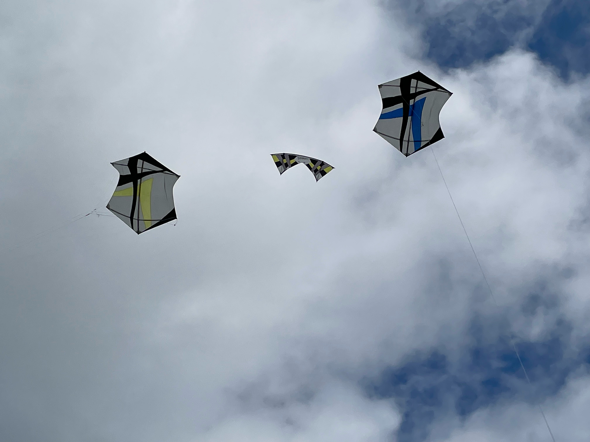 The blue kite was on c30m 2.5mm spectra on a ground anchor, the yellow kite on the same 2.5mm spectra but hand held.