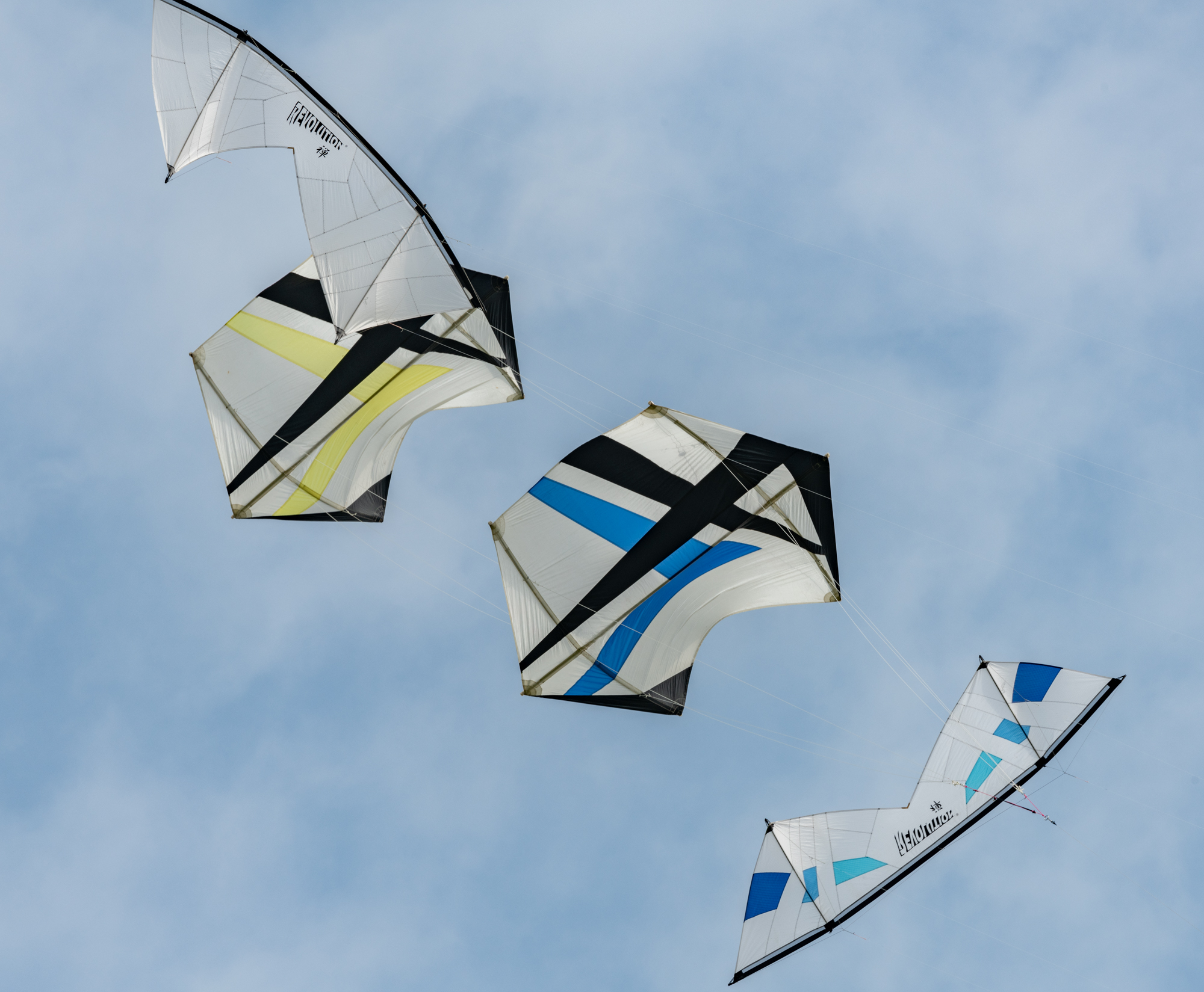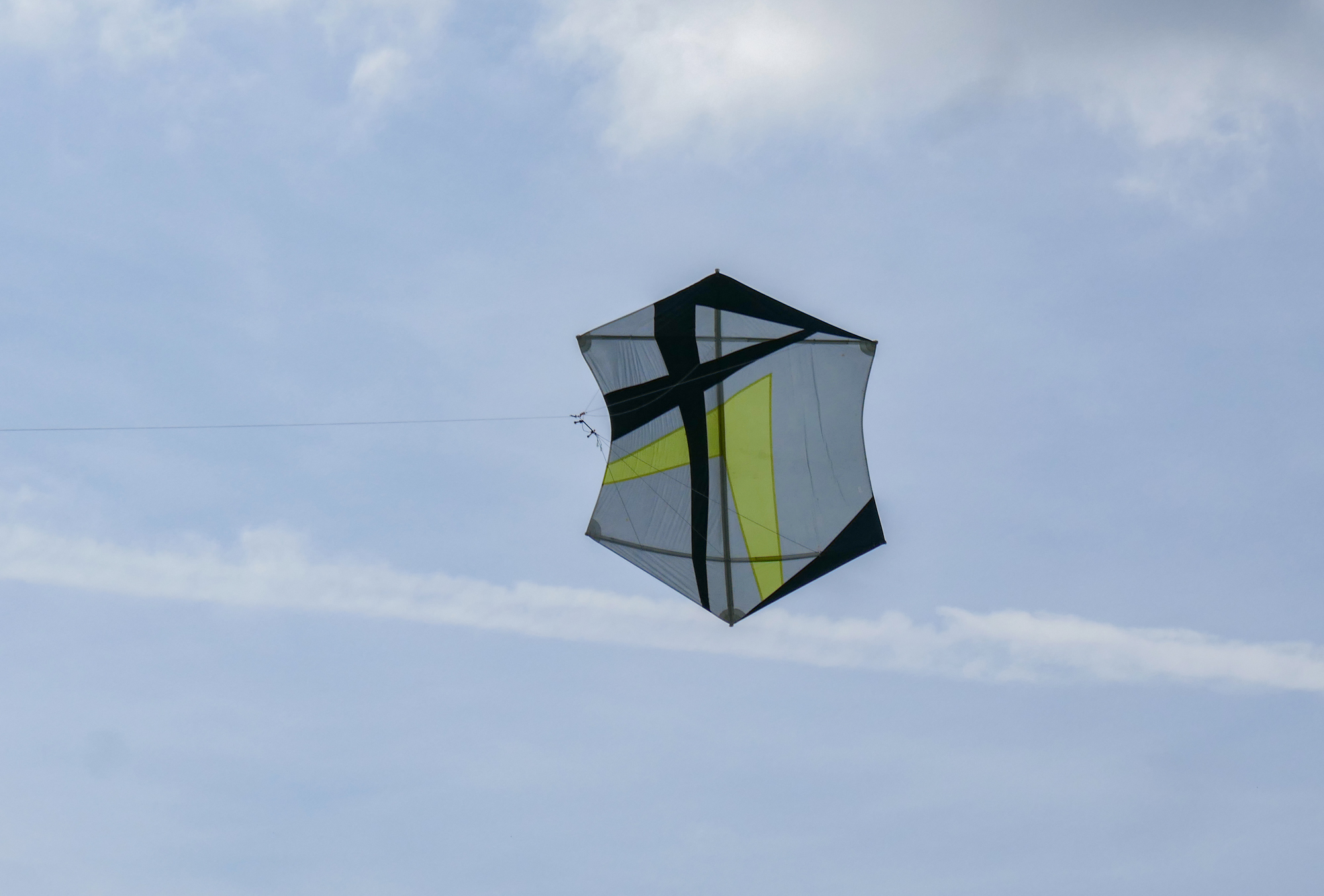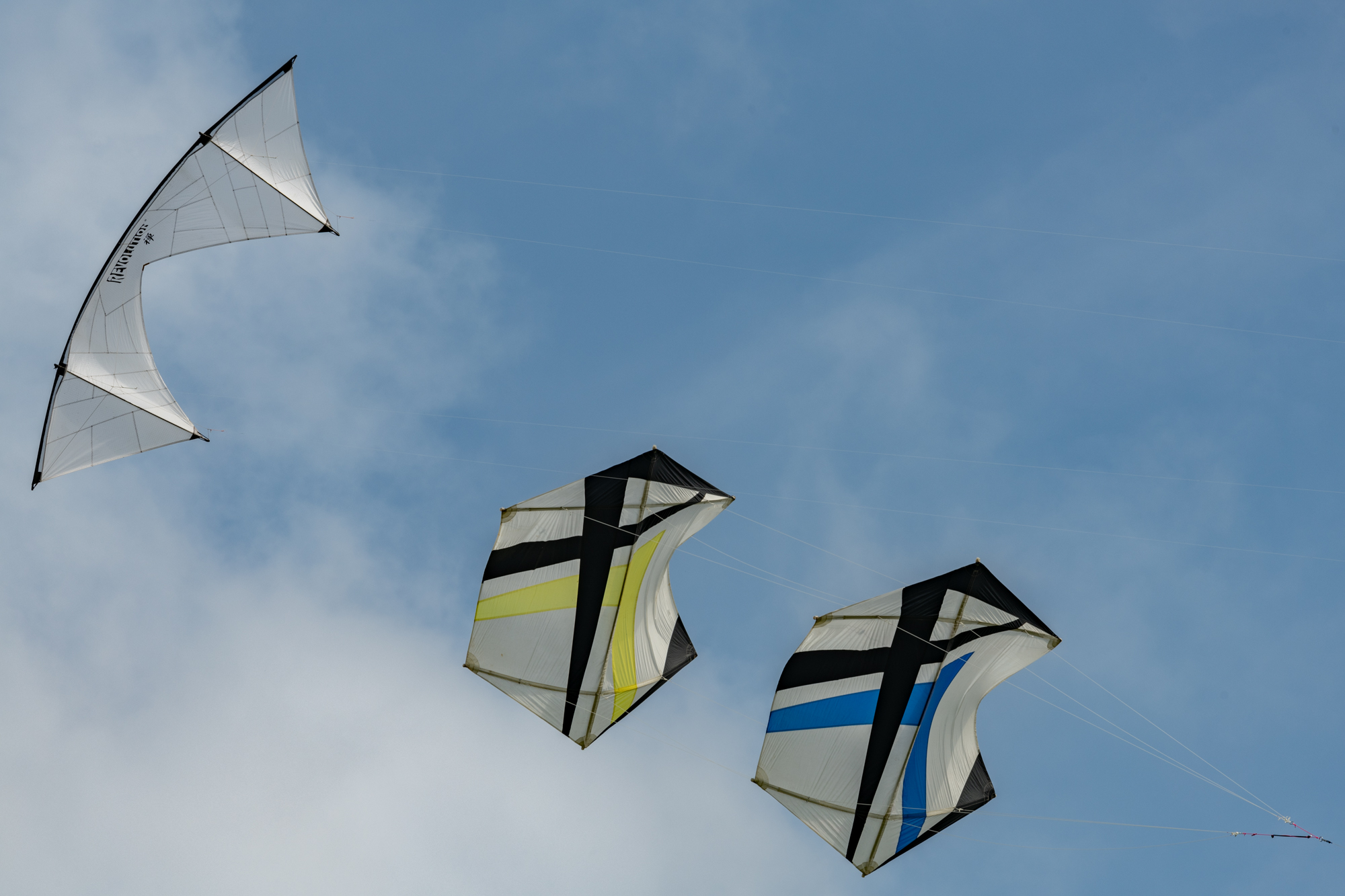 The blue kite was on c30m 2.5mm spectra on a ground anchor, the yellow kite on the same 2.5mm spectra but hand held.