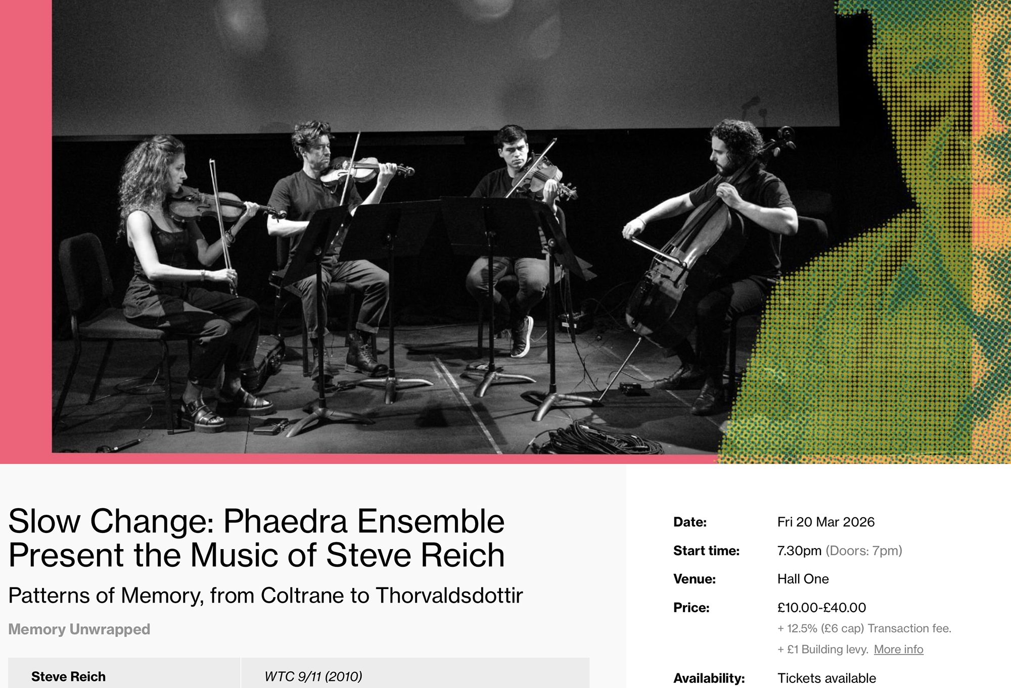 It was a stunning performance throughout and I was pleased to have seen Drumming, Part 1 again, possibly for the third time!
