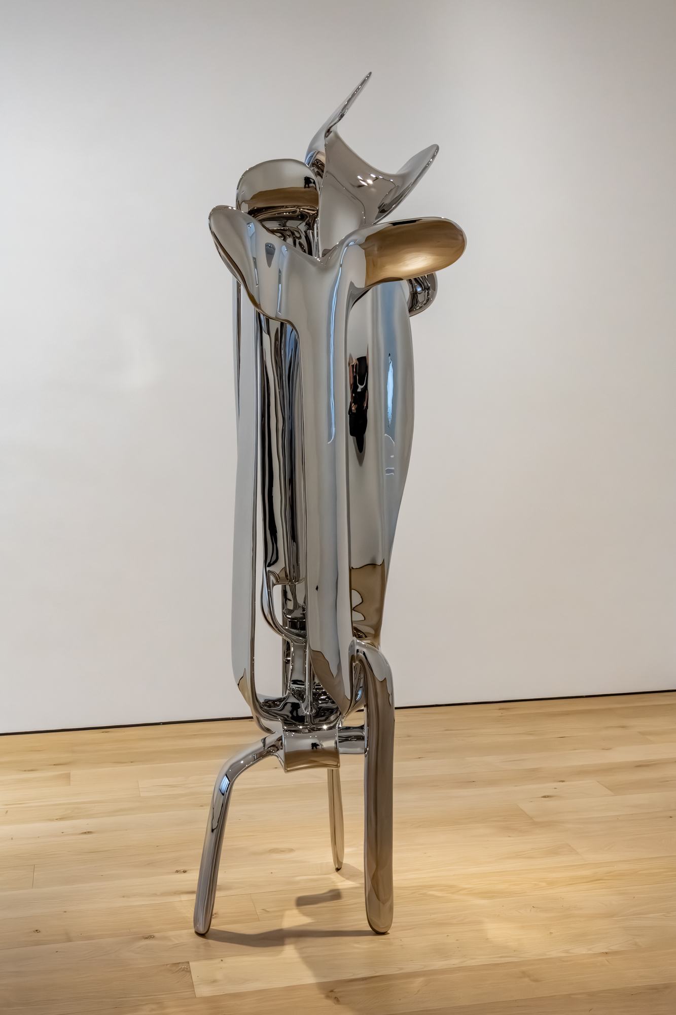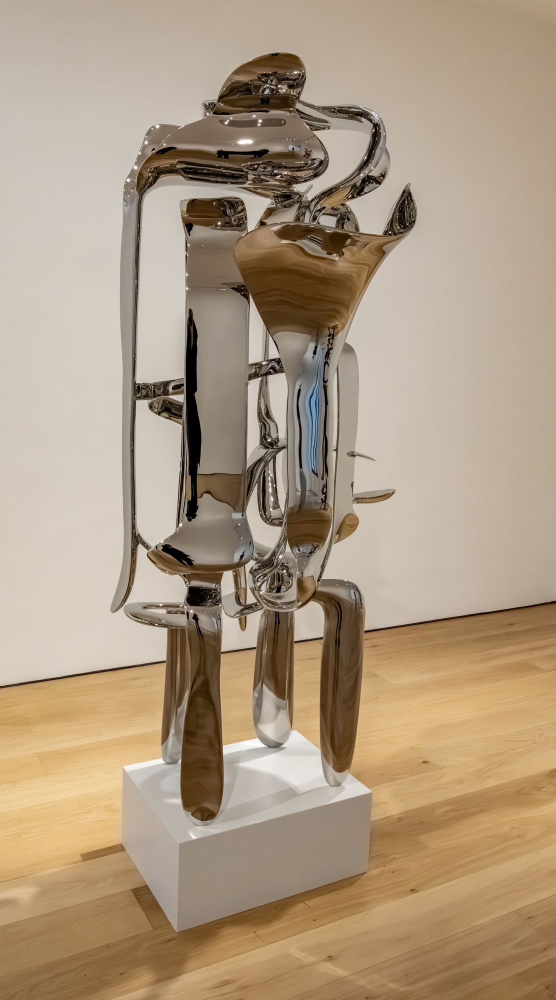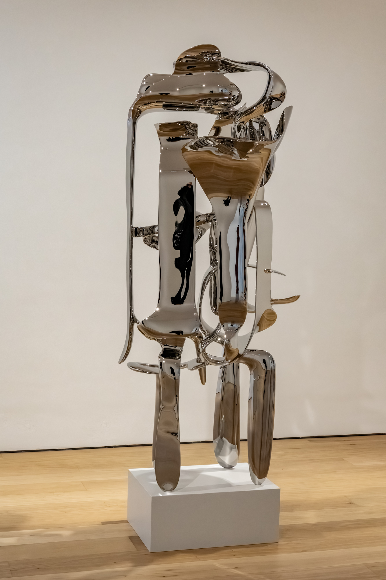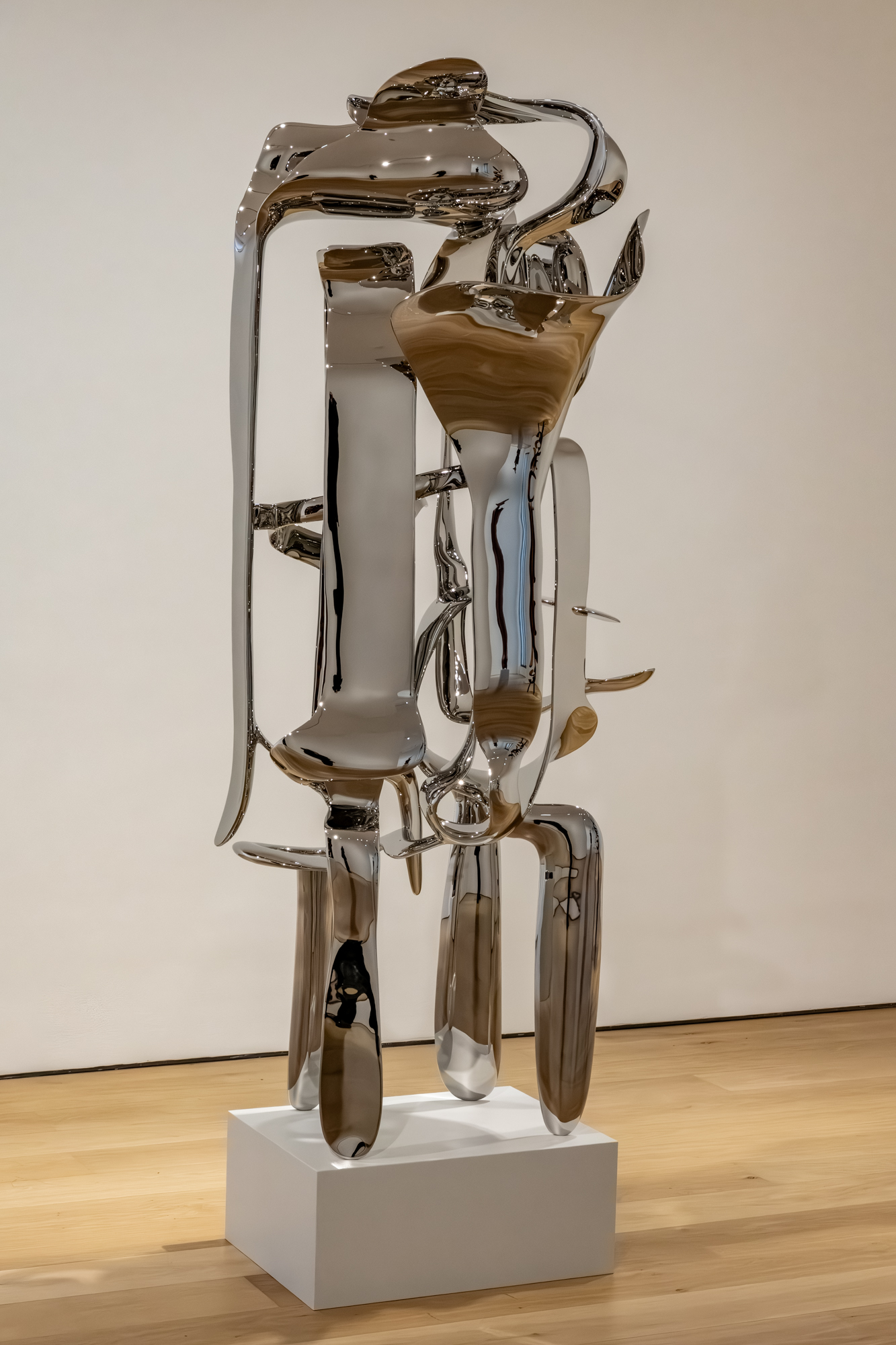 I went back to see this show again and spent quite a bit of time trying to see the polished stainless steel pieces. In the end I find them confusing compared to the coreten and painted broze and aluminium.