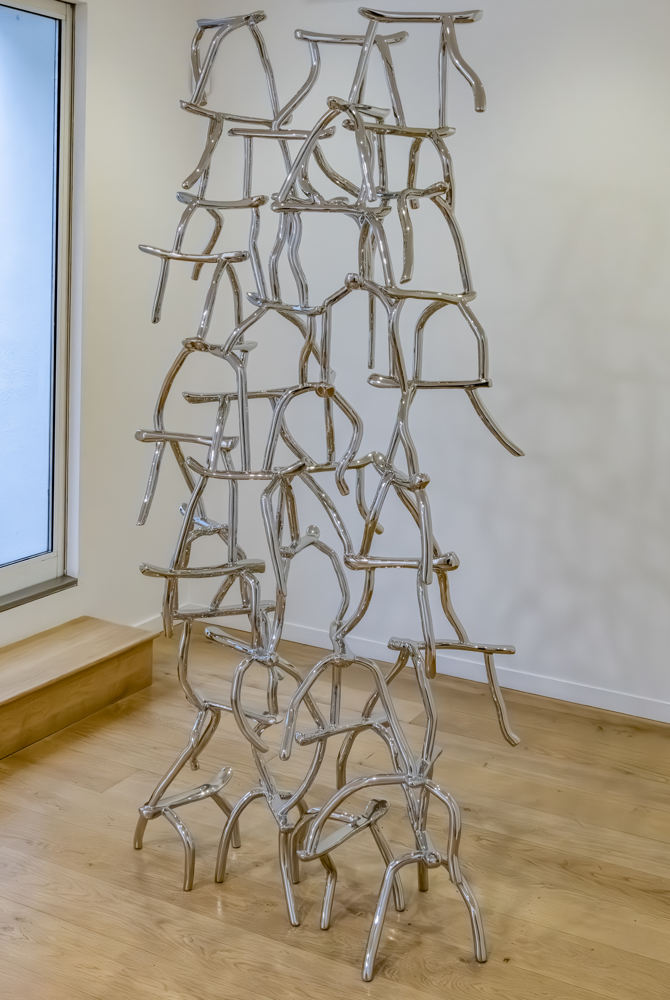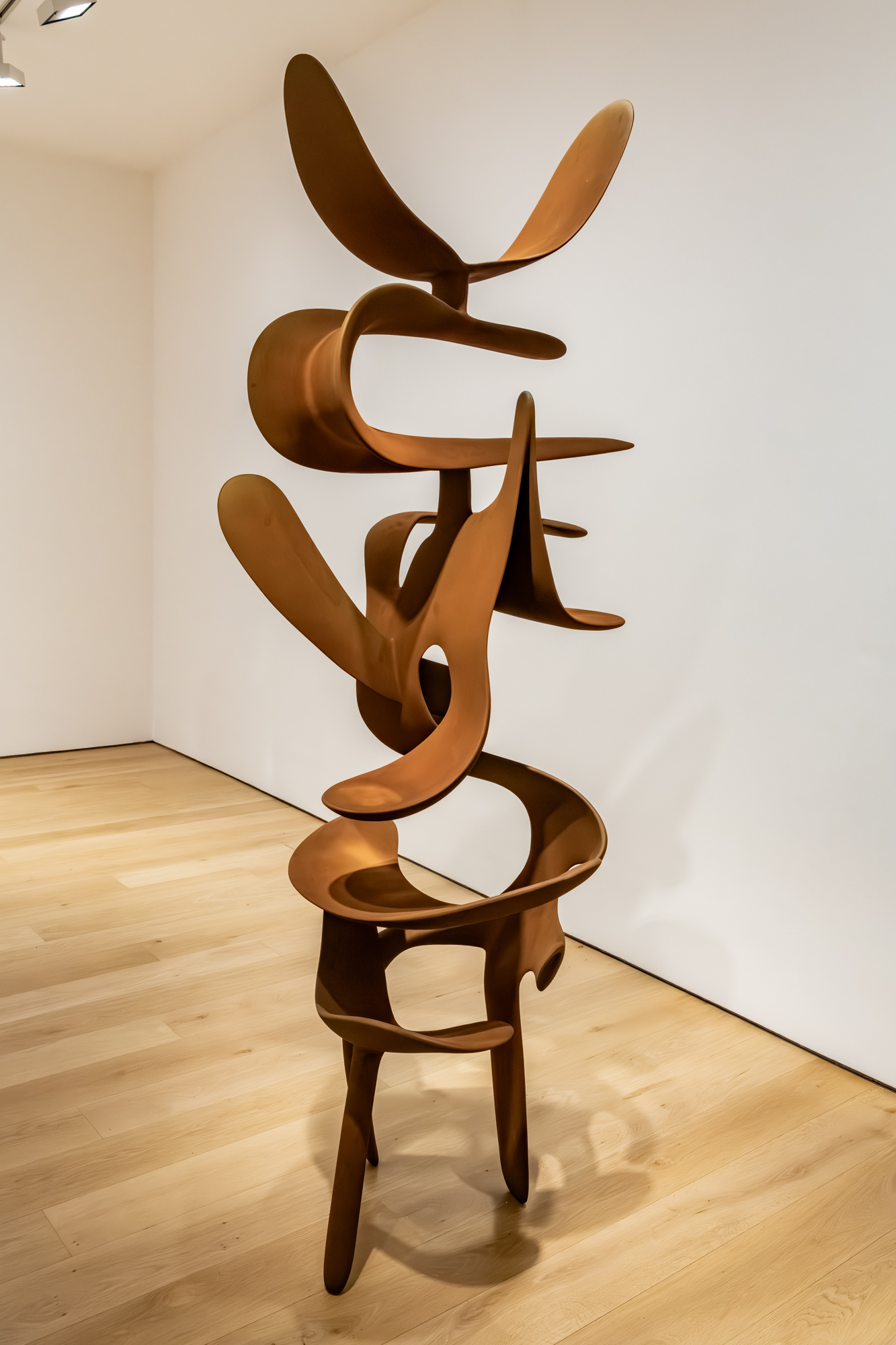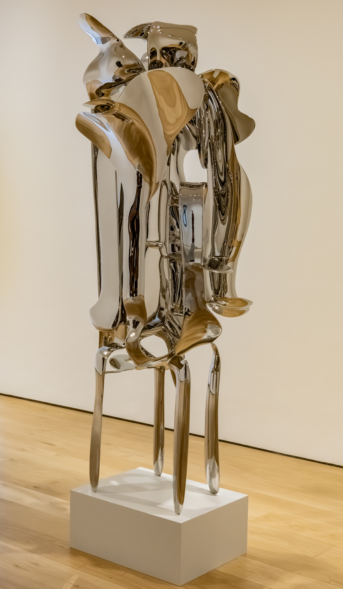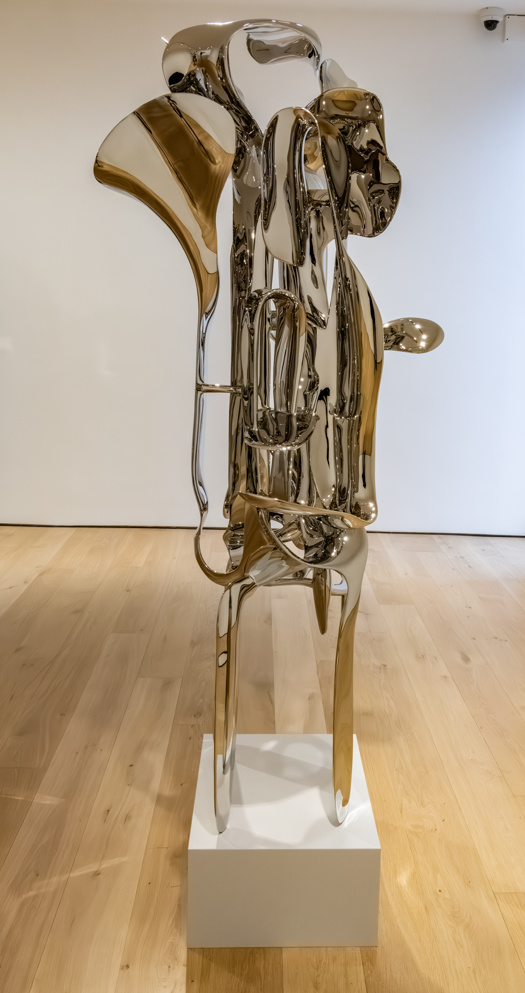 I went back to see this show again and spent quite a bit of time trying to see the polished stainless steel pieces. In the end I find them confusing compared to the coreten and painted broze and aluminium.
