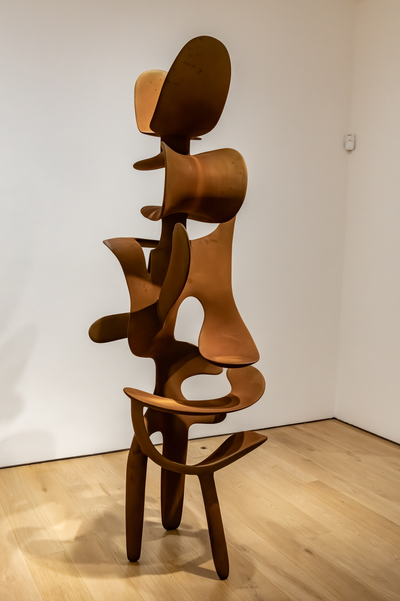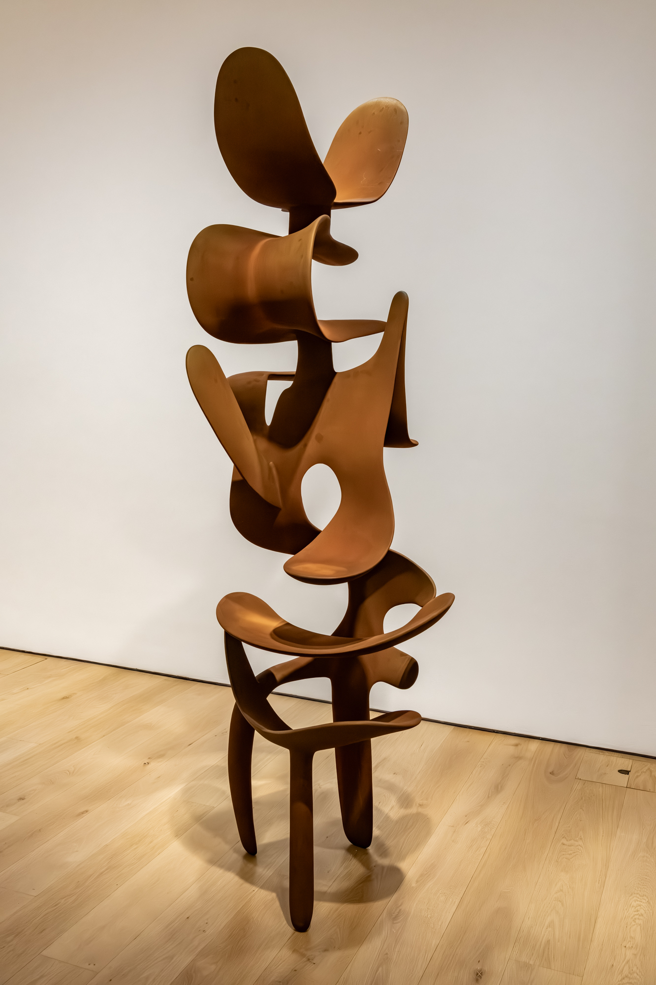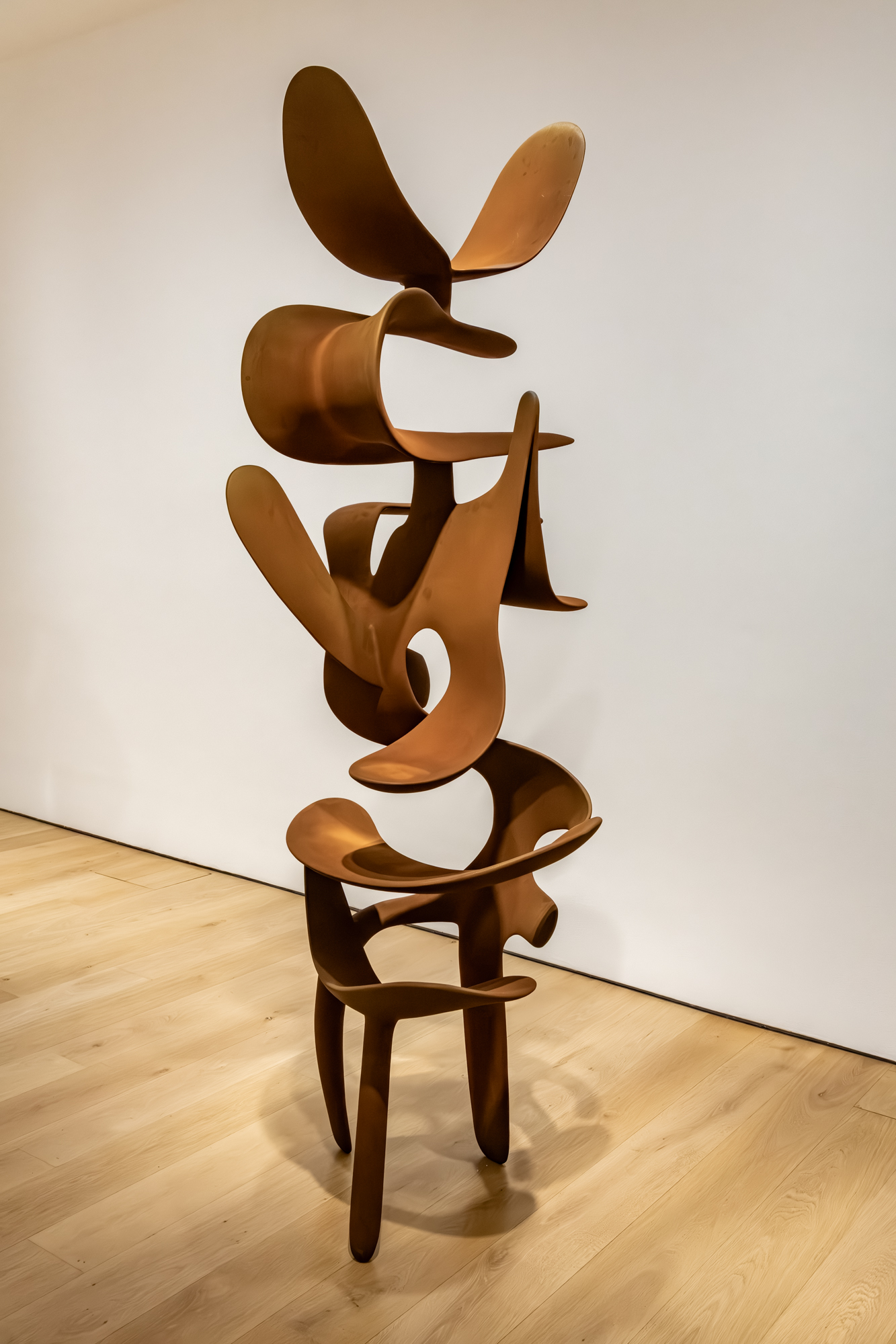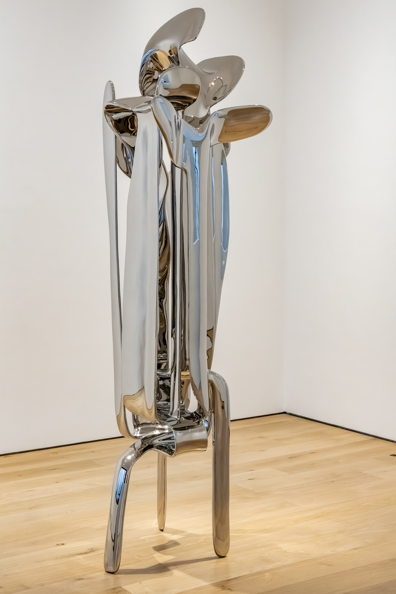 I went back to see this show again and spent quite a bit of time trying to see the polished stainless steel pieces. In the end I find them confusing compared to the coreten and painted broze and aluminium.