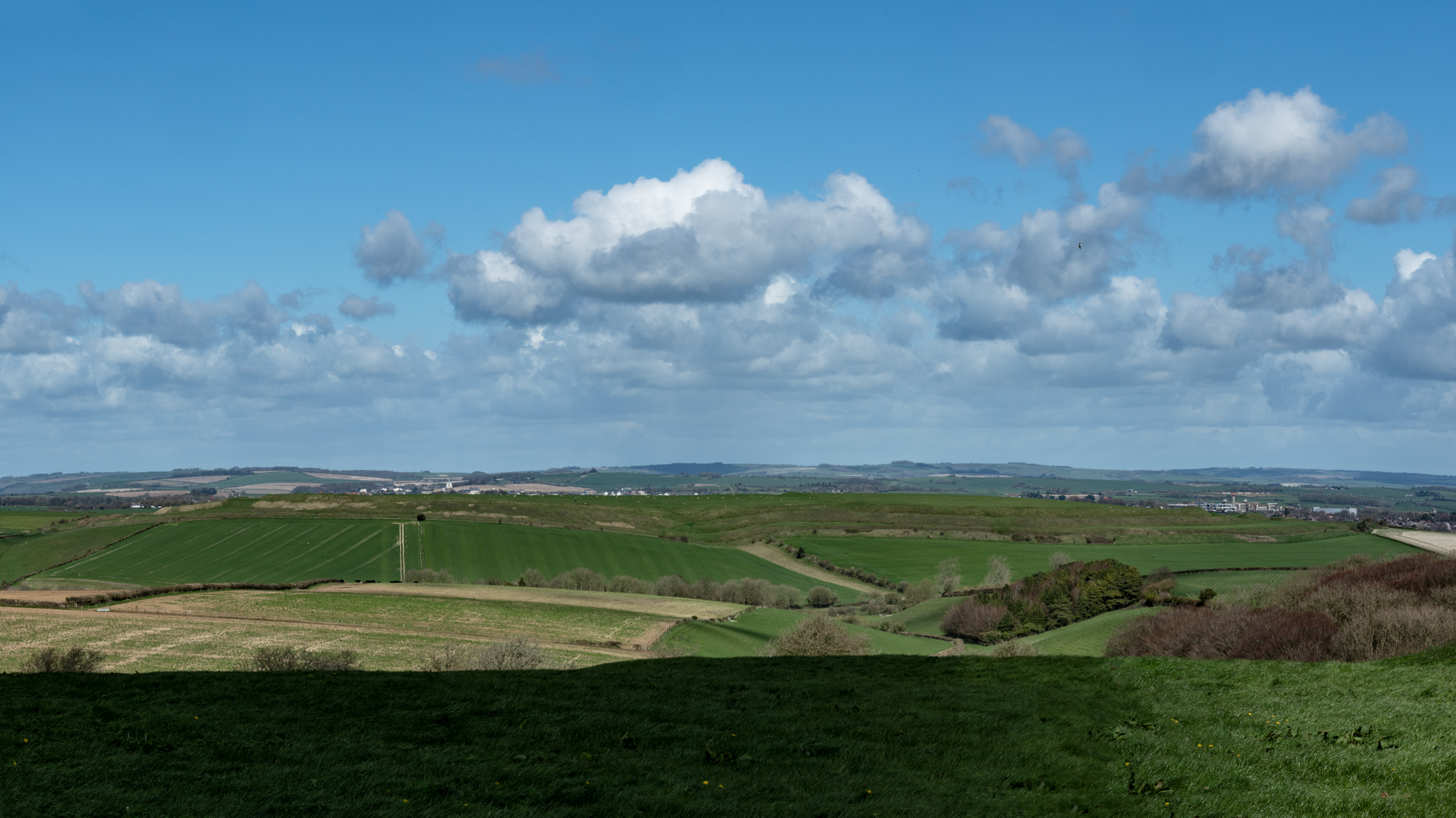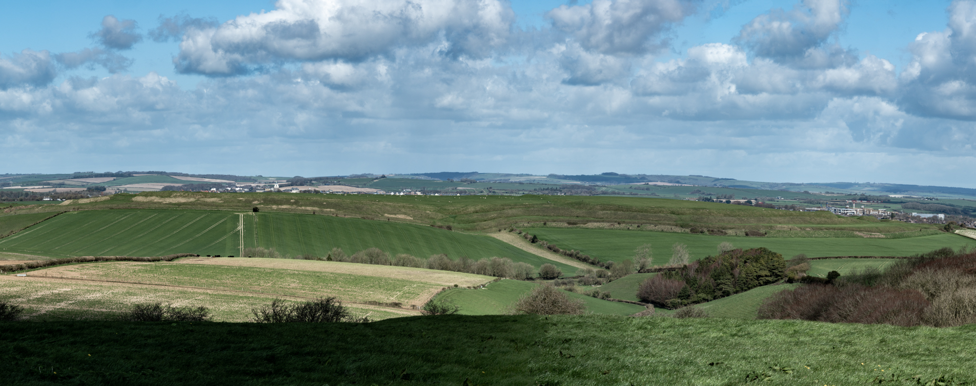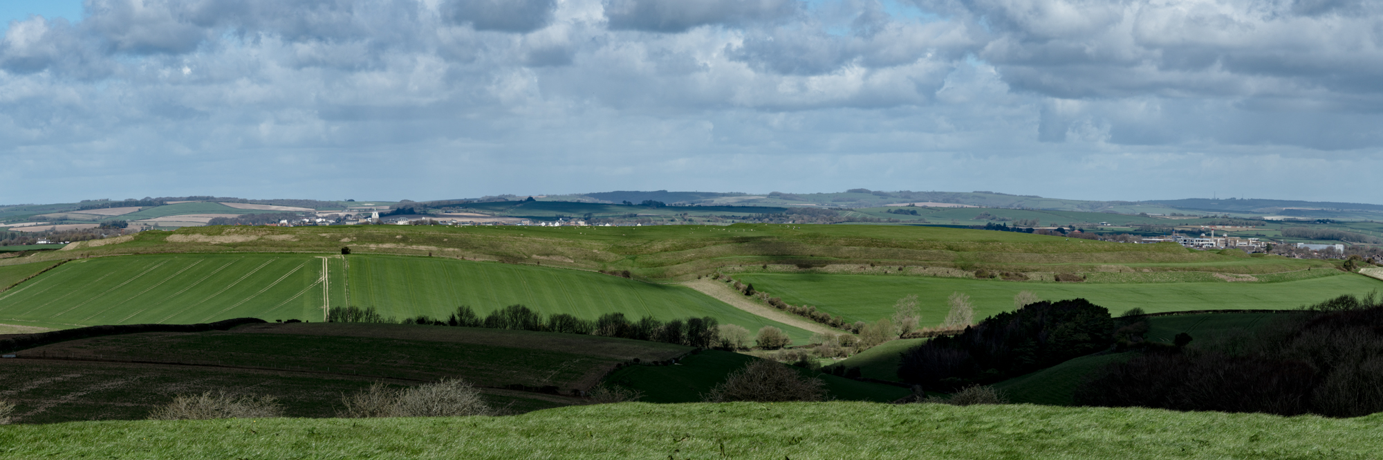 I am aware that there are various locations around Maiden Castle where there are good sight lines but capturing panoramic images in multiple frames is always going to be a bit challenging.