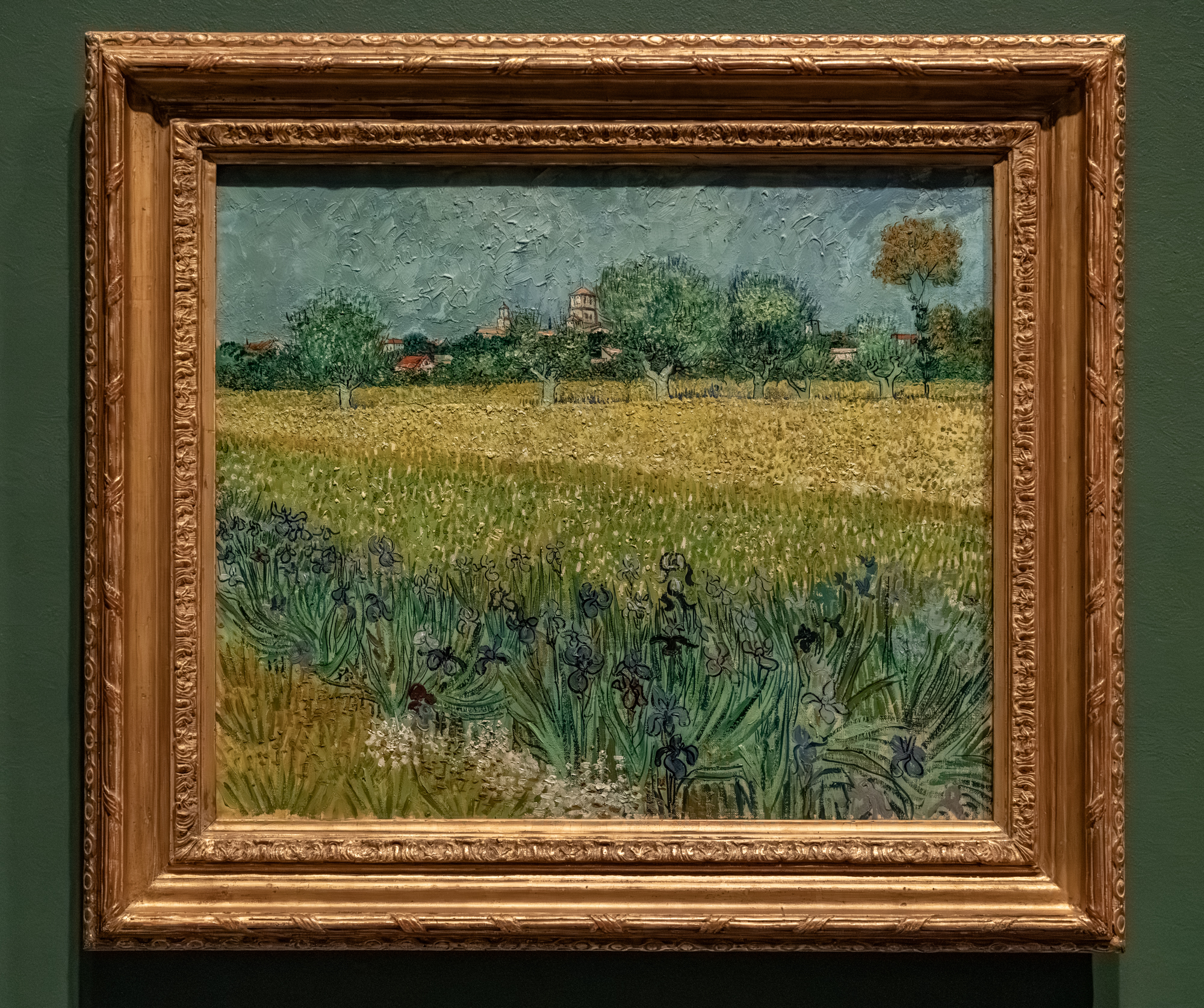 I noticed today that the Field with Irises borders on the waterway with trees close to Arles where another memorable painting was made.