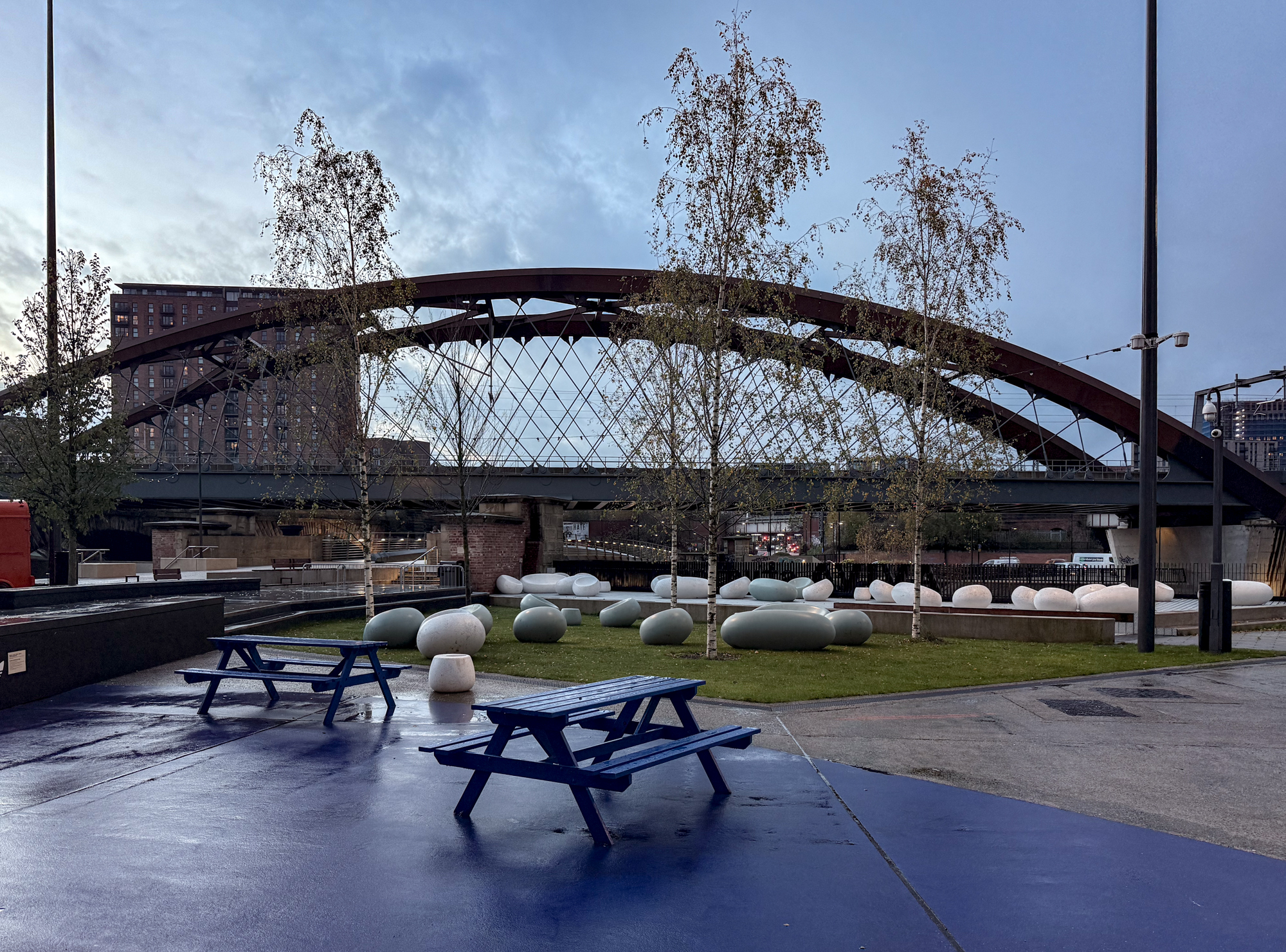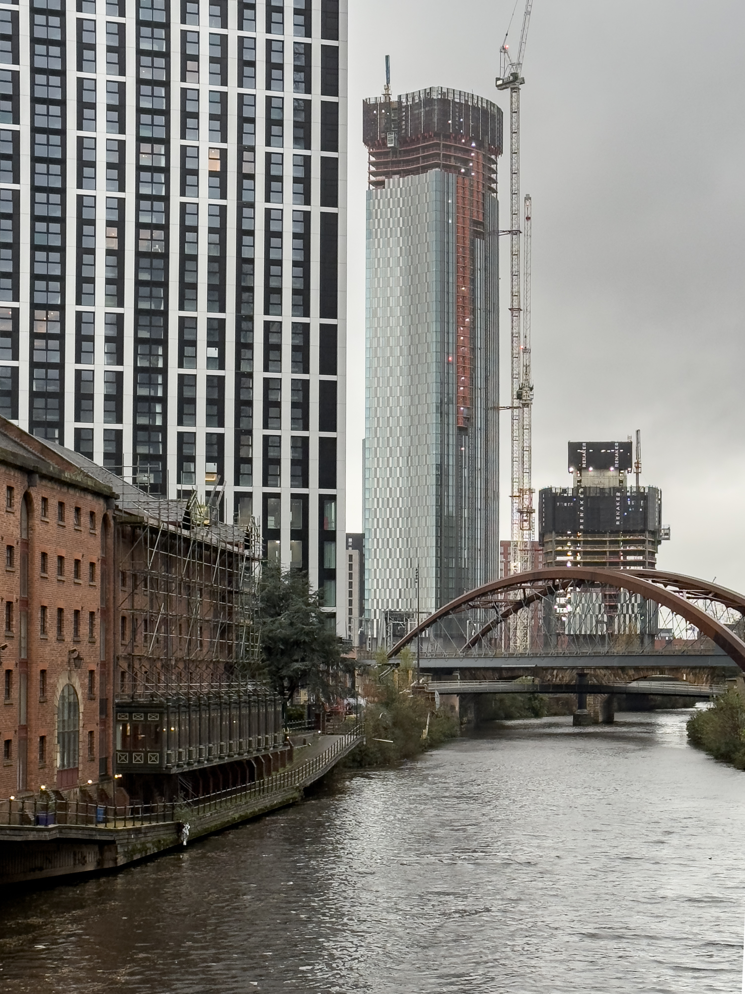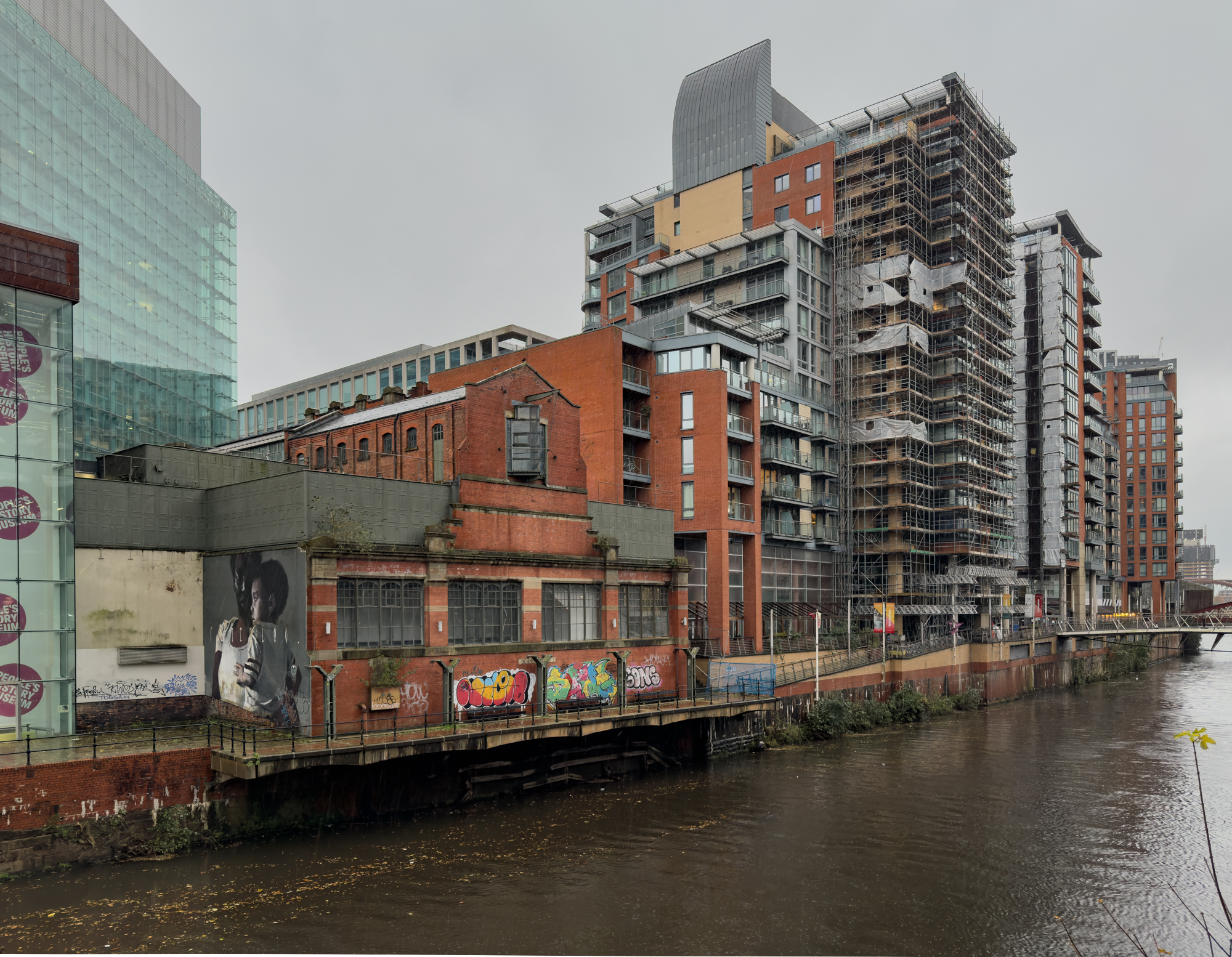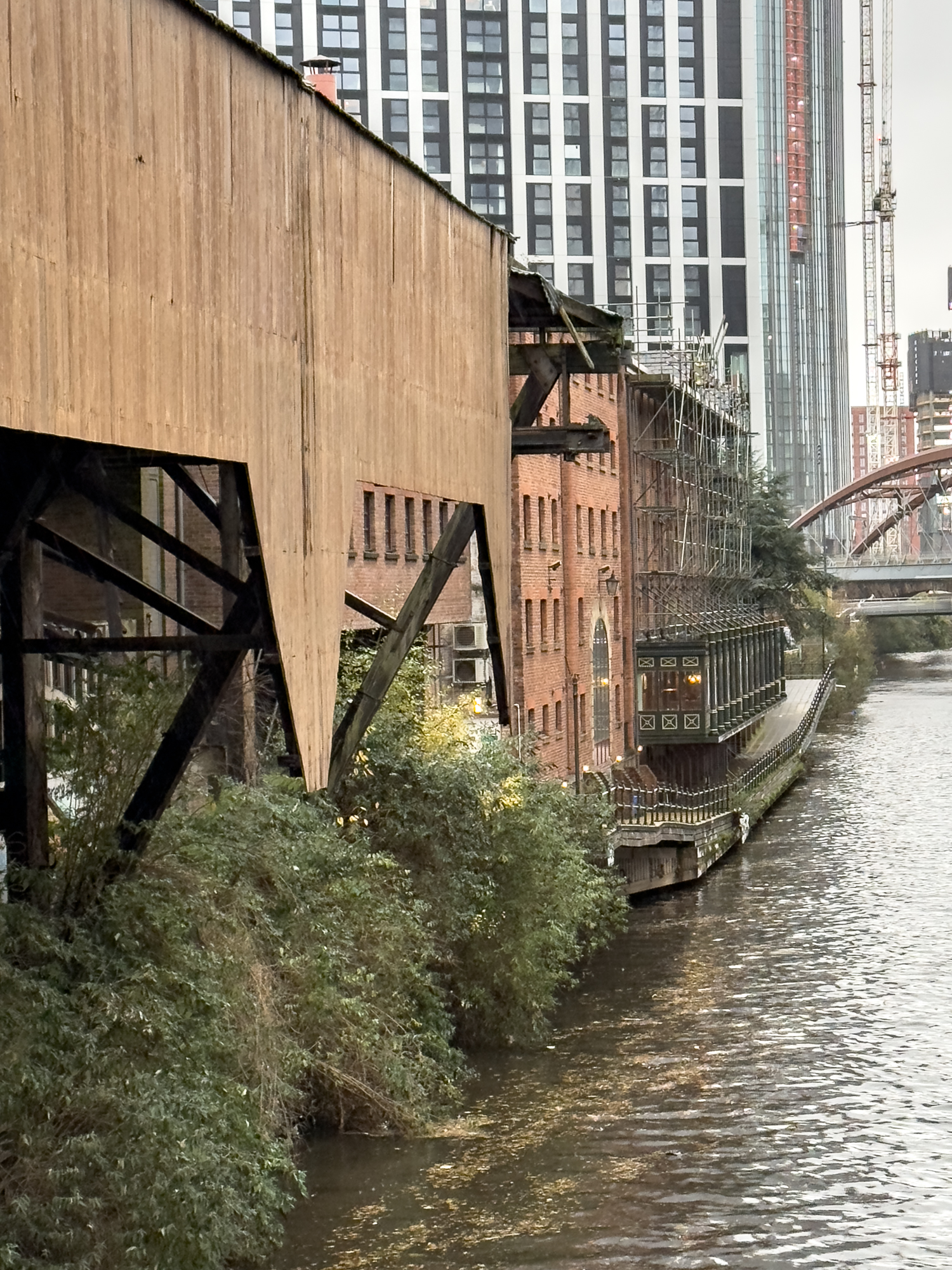 I had wondered if this isolated pillar was part of the original Manchester/Liverpool railway bridge. The entire bridge is actually Stephenson's Bridge and is a listed building. 'This is an 1830 stone railway bridge crossing the River Irwell. It is of special architectural and historic interest due to its early date, intactness, and design by George Stephenson, the nationally renowned railway engineer.'