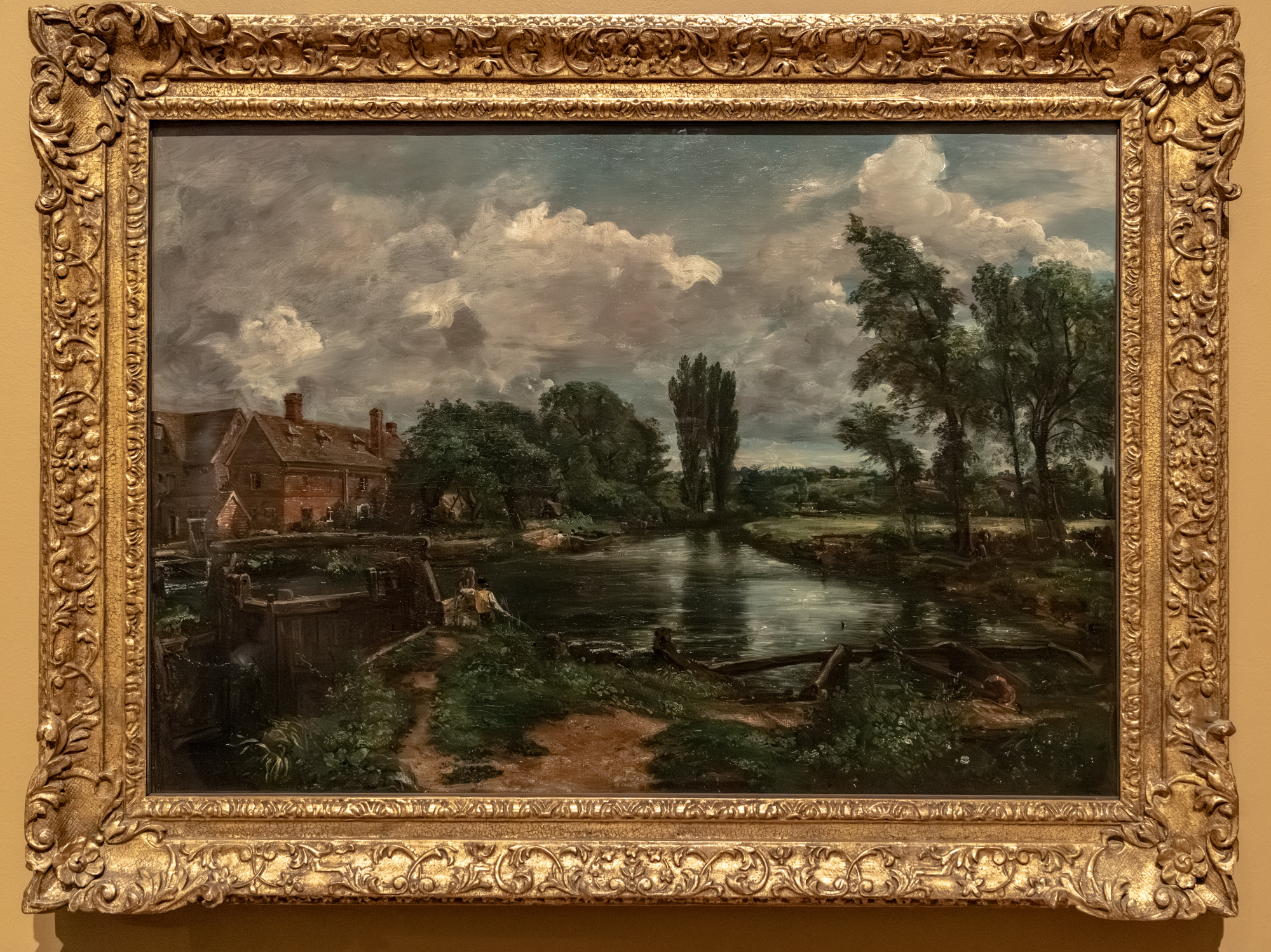 On the colour front I had a memory of a painting with a single 'green', I had thought 'Windsor' green for some reason but I did not find it on my last visit. This time I realised that it was Flatford Mill from the Lock that I had remembered but that it was only close-up that the colour was really revealed. My idea is that base colours are used and they are then articulated tonally with the carefully added marks of paintbrush or other impliments.